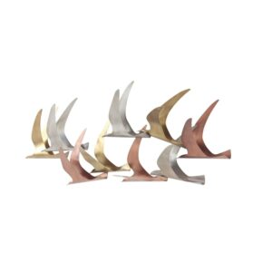 DecMode Multi Colored Metal Flying Flock Of Bird Wall Decor is a unique addition to your stylish home. Create a balanced space in the most creative way with this expertly crafted wall decor for captivating focal point. Showcase your personality and turn your walls into an art gallery with this captivating wall decor. Use this decor to add personality to a living room, bedroom, or dining room.. This item ships in 1 carton. Can be hung horizontally using the metal rings on the back; nails and screws not included. Suitable for indoor use only. This item ships fully assembled in one piece. This is a single multi colored wall sculptures. Coastal style.