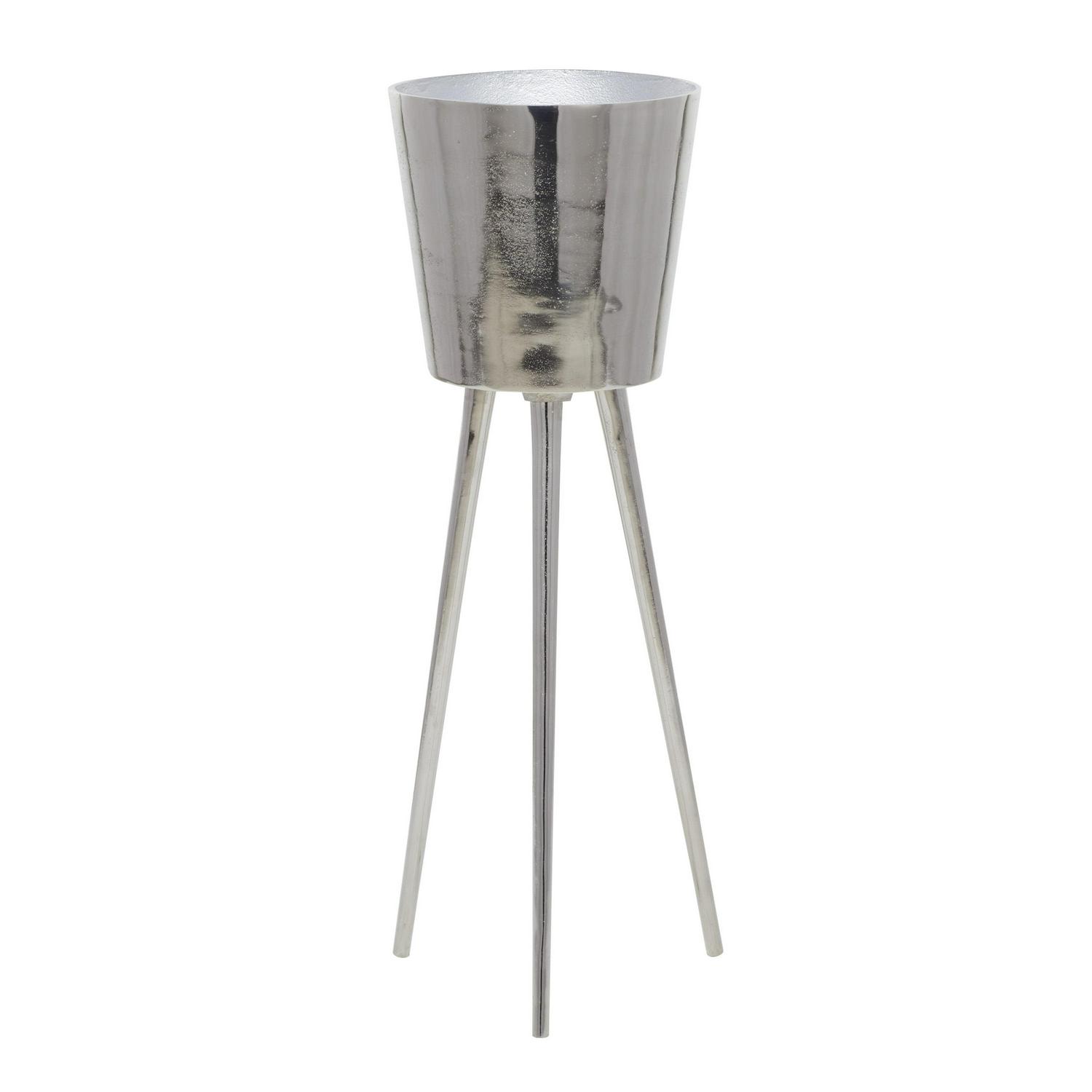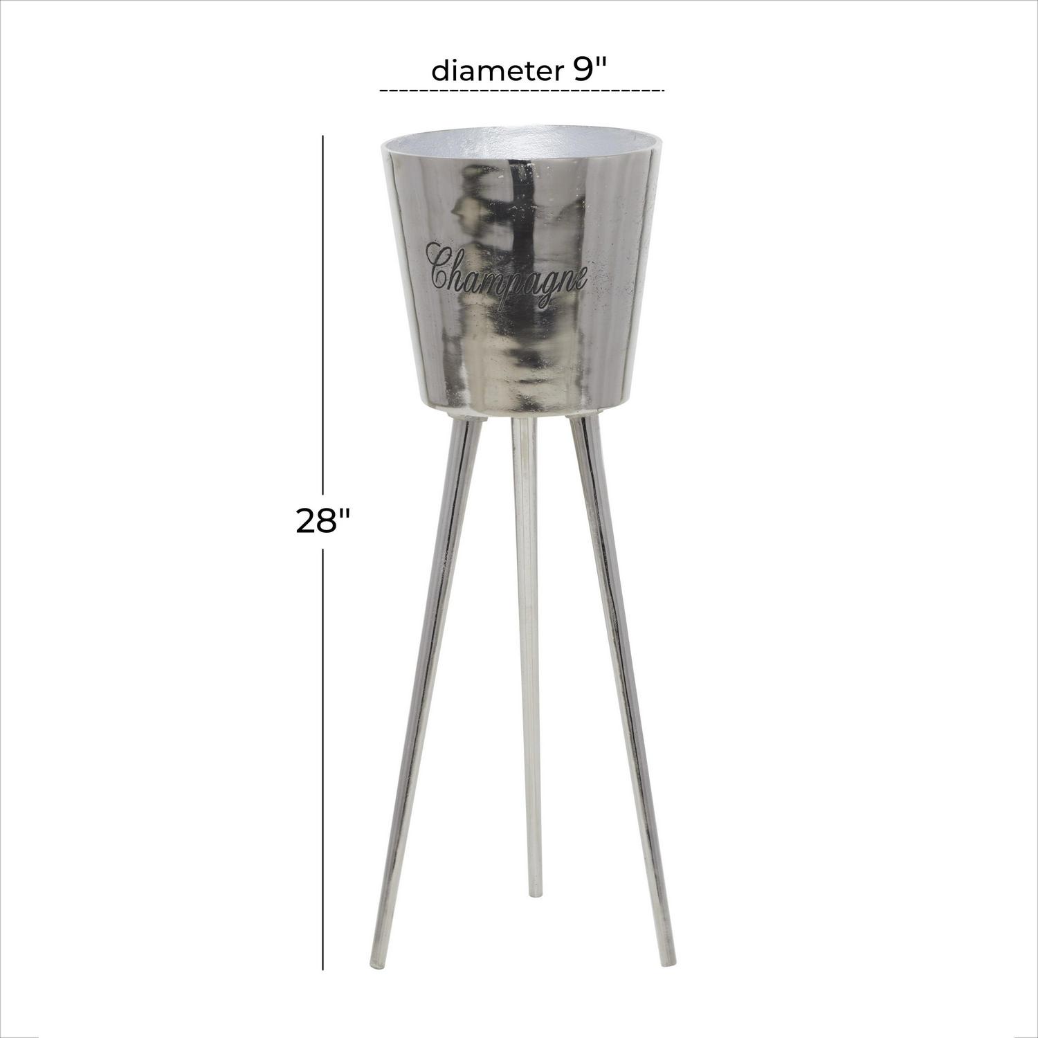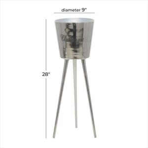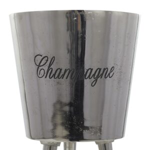 DecMode Round Aluminum Tall Floor Champagne 3 Bottles Gray Ice Bucket is a unique addition to your stylish home. Entertain in style or use as a storage display to keep your bottled beverages cool and protected on any surface with this silver standing wine bucket. This item ships in 1 carton. Aluminum ice bucket makes a great gift for any occasion. Suitable for indoor use only. This item ships fully assembled in one piece. Maximum weight limit is 10 lbs. Made in India. This is a single gray colored champagne bucket. Modern style. Gray ice bucket can hold 3 average wine bottles. This accent piece showcases a “Champagne” typography.