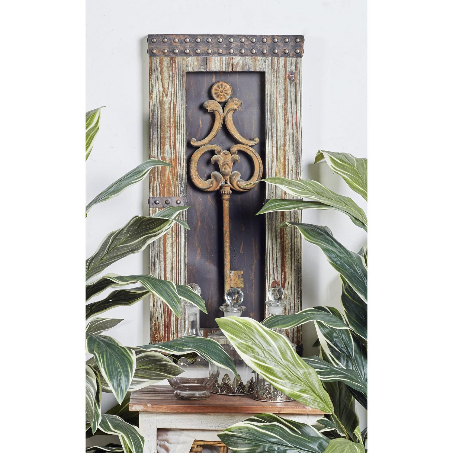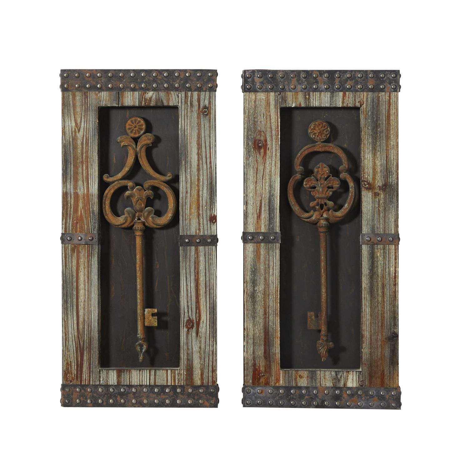 - These wood and metal wall decor accentuate oversized vintage keys in a vertical rectangular frame