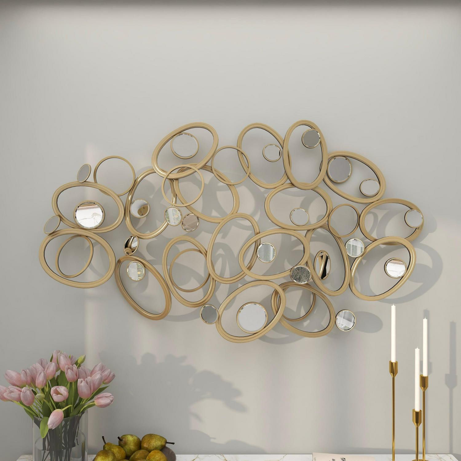 – DecMode Silver Metal Geometric Wall Decor with Round Mirrored Accents makes a perfect addition to any home
