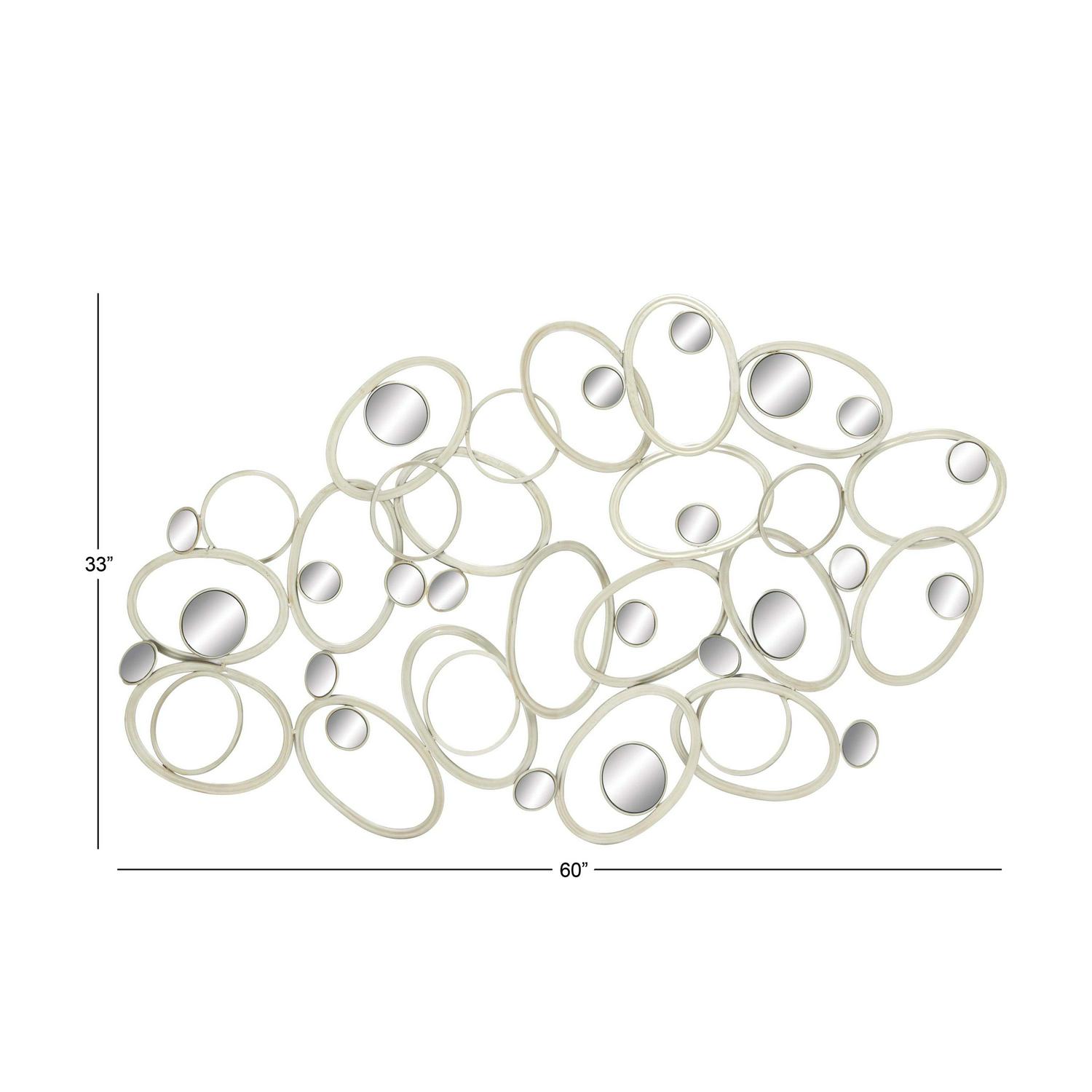 DecMode Silver Metal Geometric Wall Decor with Round Mirrored Accents