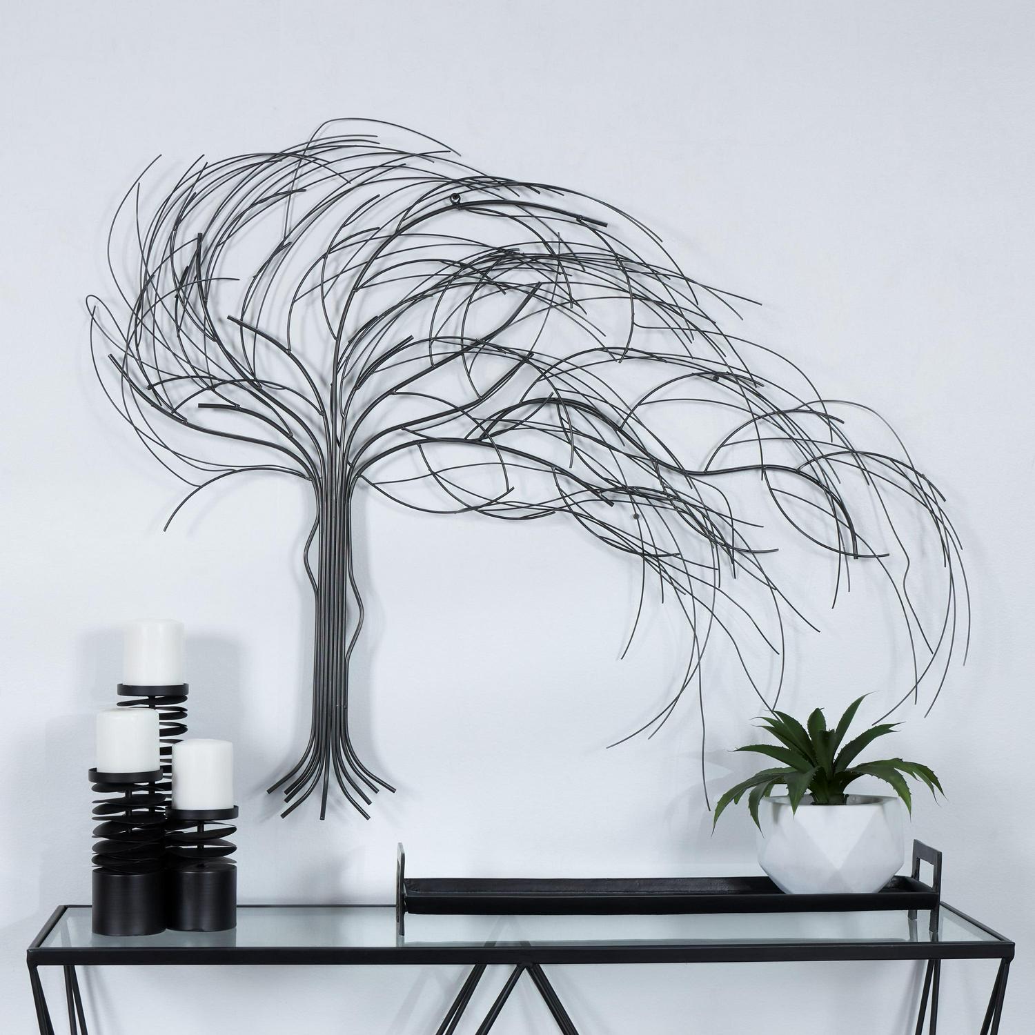 - A tree inspired wall decor with willowing branches with a solid pattern