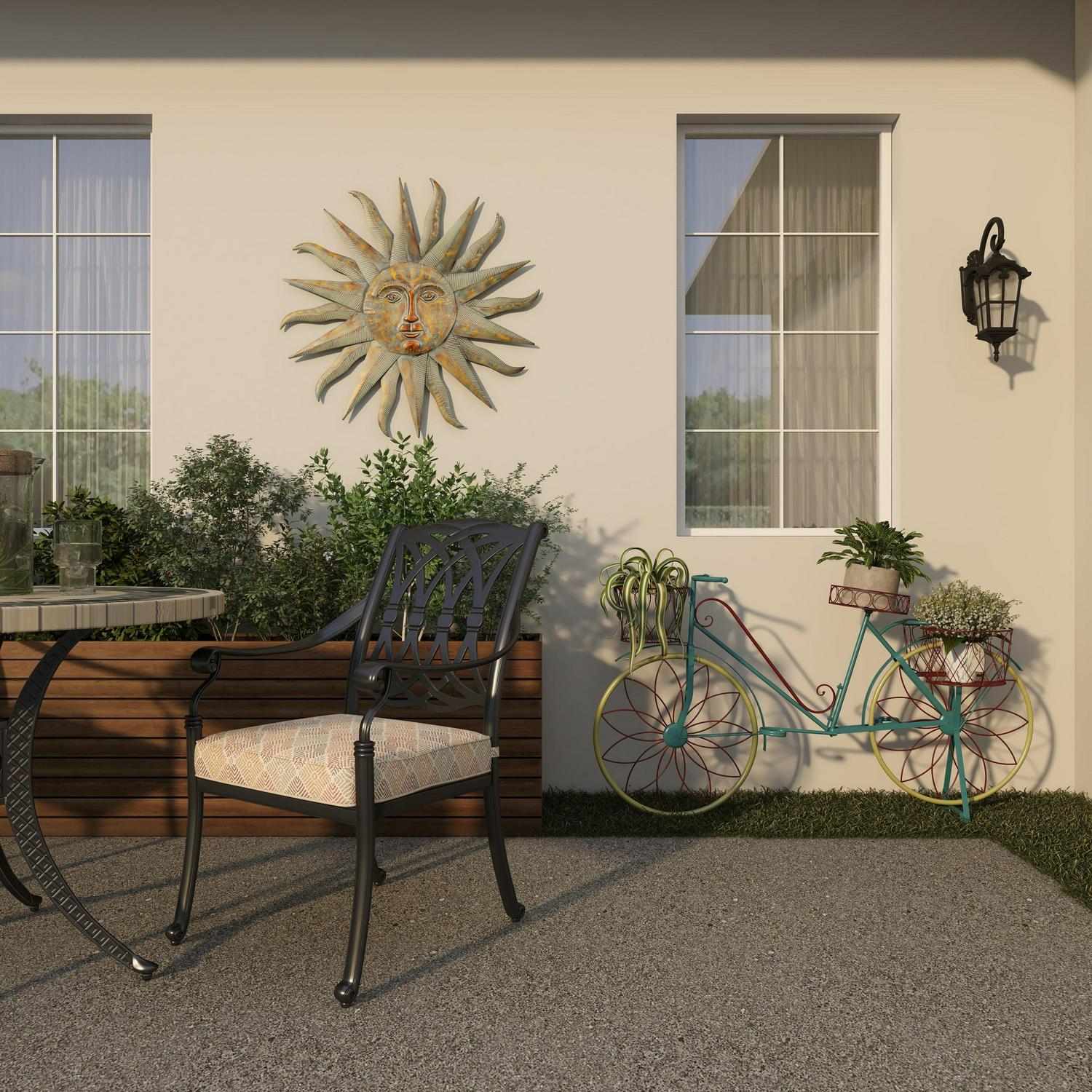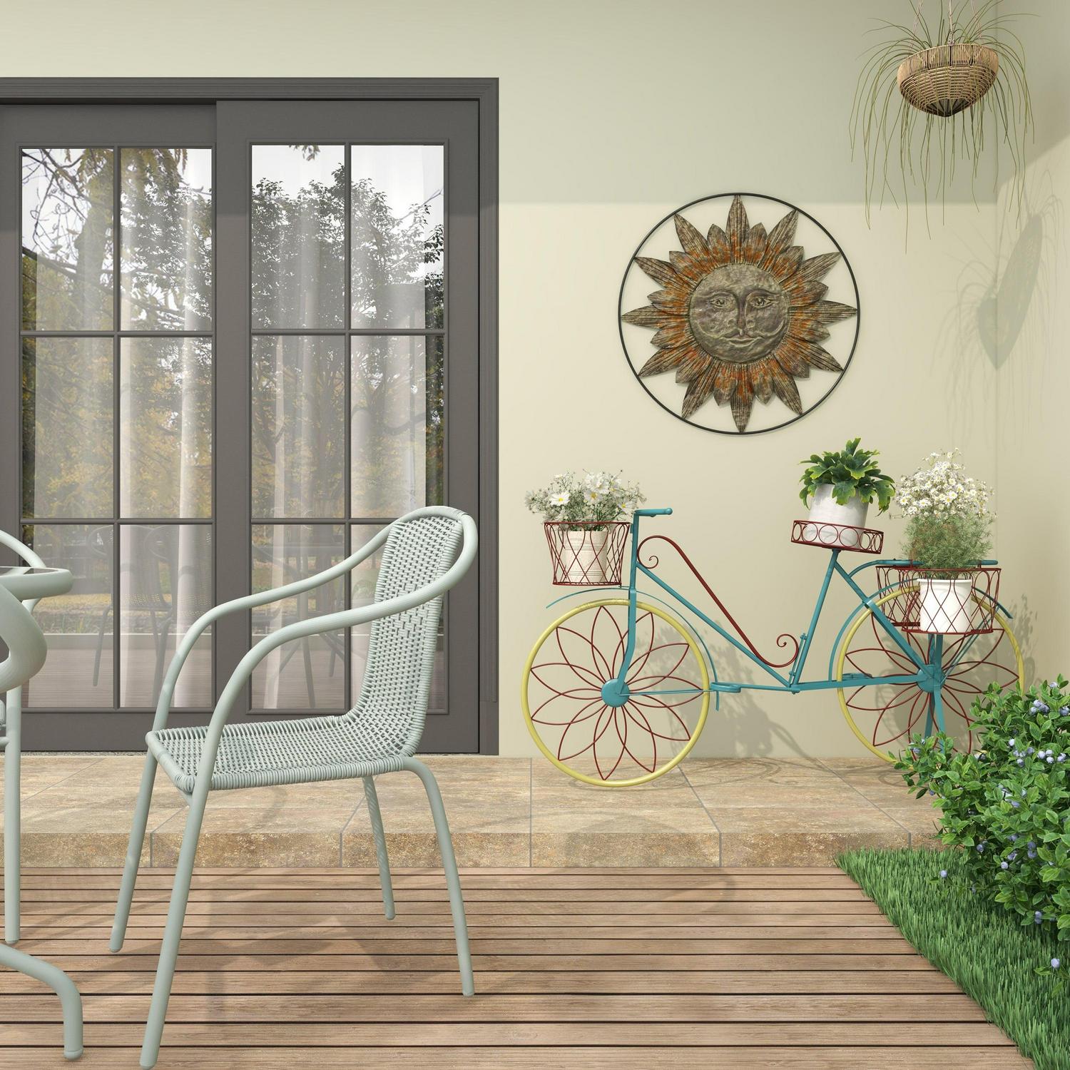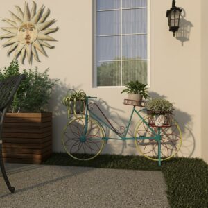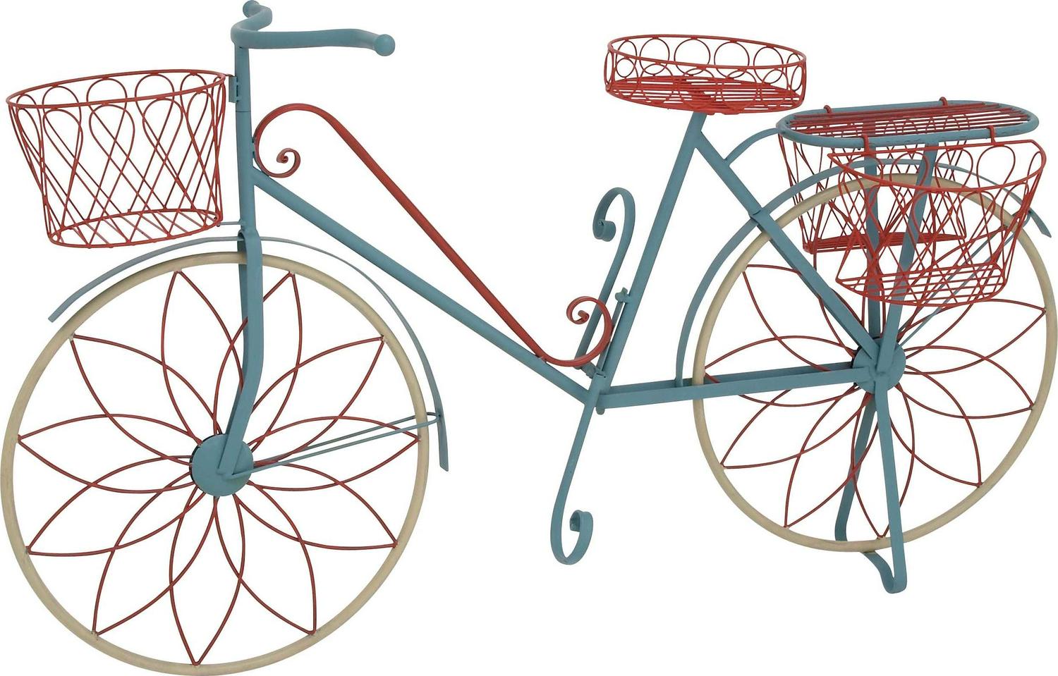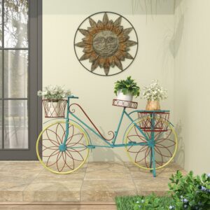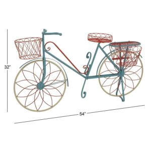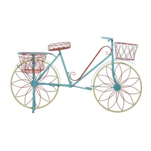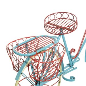 DecMode Vintage Turquoise/Red 3 Tier Bicycle Inspired Metal Plantstand, 54 W x 32 H
