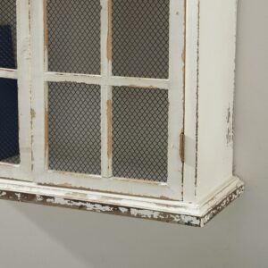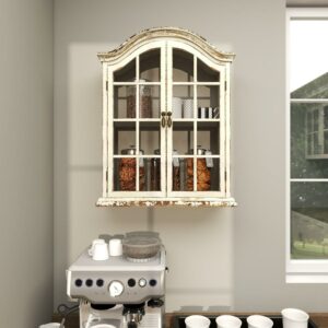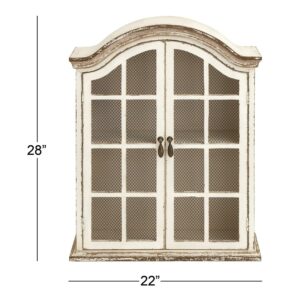 DecMode Vintage White Wood Wall DA(C)cor with Glass Doors and Shelving, 22 L x 8 W x 28 H