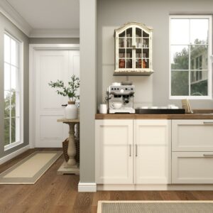 – Cream and brown distressing highlight this traditional wall mounted cabinet