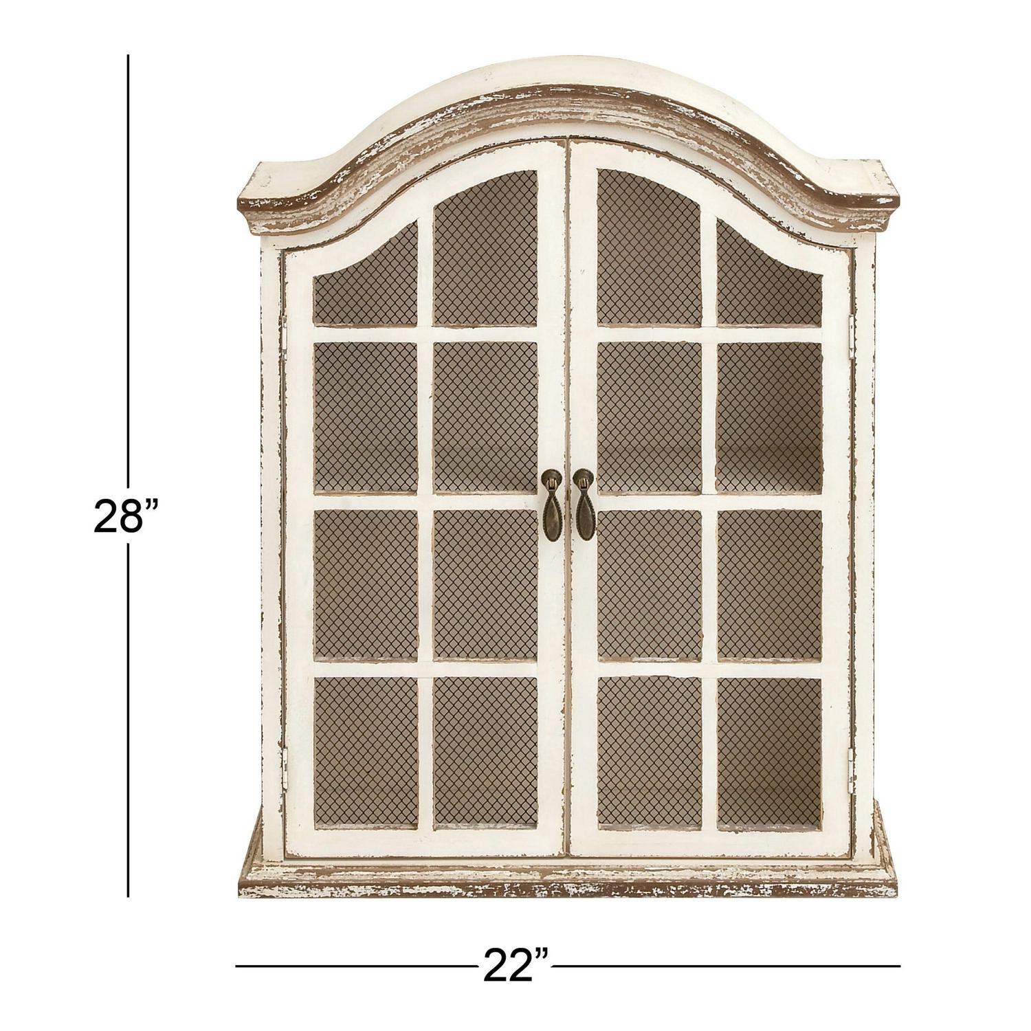 – DecMode 22″ x 8″ Distressed 1-Tier White Wall Shelf with Arched Shutter Doors makes a perfect addition to any home