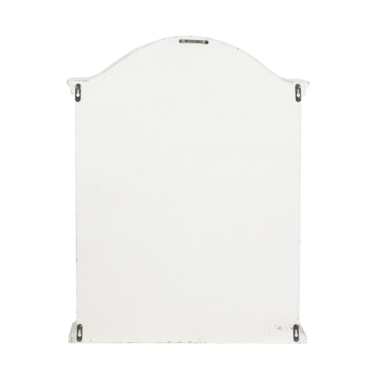 DecMode 22″ x 8″ Distressed 1-Tier White Wall Shelf with Arched Shutter Doors is a unique addition to your stylish home. Create an excellent focal point on your walls paired with some cute accent tables, and level up your home with this amazing wall Decor. Store your belongings in style with this traditional wall mounted cabinet in your bedroom, bathroom, or living room wall for a classic and convenient mounted storage furniture. This item ships in 1 carton. Can be hung horizontally using the keyholes on the back; nails and screws not included. Suitable for indoor use only. This item ships fully assembled in one piece. Maximum weight limit is 20 lbs. This is a single white colored floating shelf. Wood wall shelf features a single shelf. Traditional style.