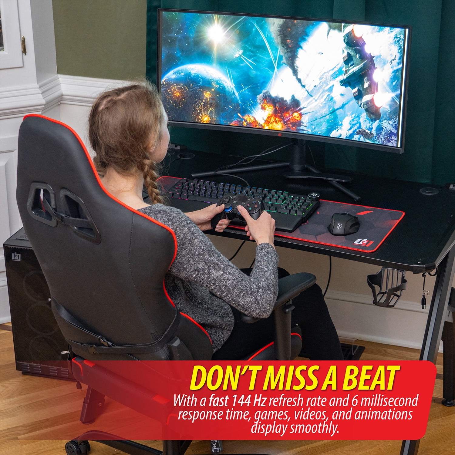 Deco Gear 34″ 3440×1440 21:9 Ultrawide Curved Monitor, 180Hz, HDR10, 4000:1, 6ms, 99% sRGB with Bonus Deco Gear Mechanical Anti-Ghosting Gaming Keyboard and Deco Gear Large Extended Non-Slip Mouse Pa