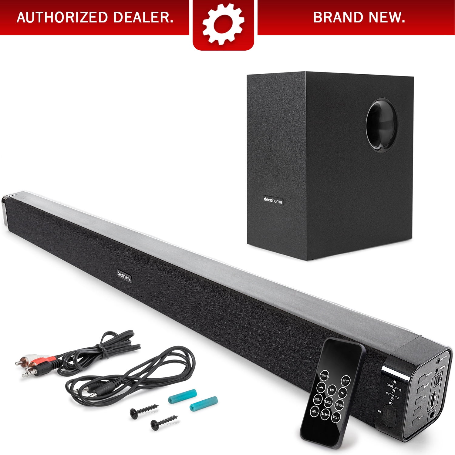 60W Soundbar with Subwoofer – Premium 2.1 Channel Audio Finding the best soundbar for your home theater can be a difficult process, but Deco Home has the perfect solution that meshes premium quality audio with affordability and enjoyment. The Deco Home 2.1 Channel Audio Soundbar with Wireless Subwoofer gives you a high-end listening experience at the right price. Listed as one of the best soundbars for under 200 dollars, the pairing of two 2.5” front facing speakers with two built in subwoofer ports and a dedicated separate 20W wireless subwoofer can complete any home theater setup. 60W Soundbar with Subwoofer – Premium 2.1 Channel Audio Finding the best soundbar for your home theater can be a difficult process, but Deco Home has the perfect solution that meshes premium quality audio with affordability and enjoyment. The Deco Home 2.1 Channel Audio Soundbar with Wireless Subwoofer gives you a high-end listening experience at the right price. Listed as one of the best soundbars for under 200 dollars, the pairing of two 2.5” front facing speakers with two built in subwoofer ports and a dedicated separate 20W wireless subwoofer can complete any home theater setup.
