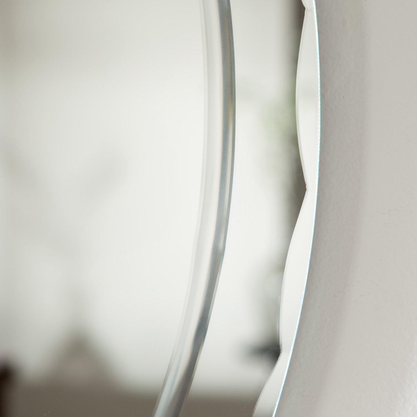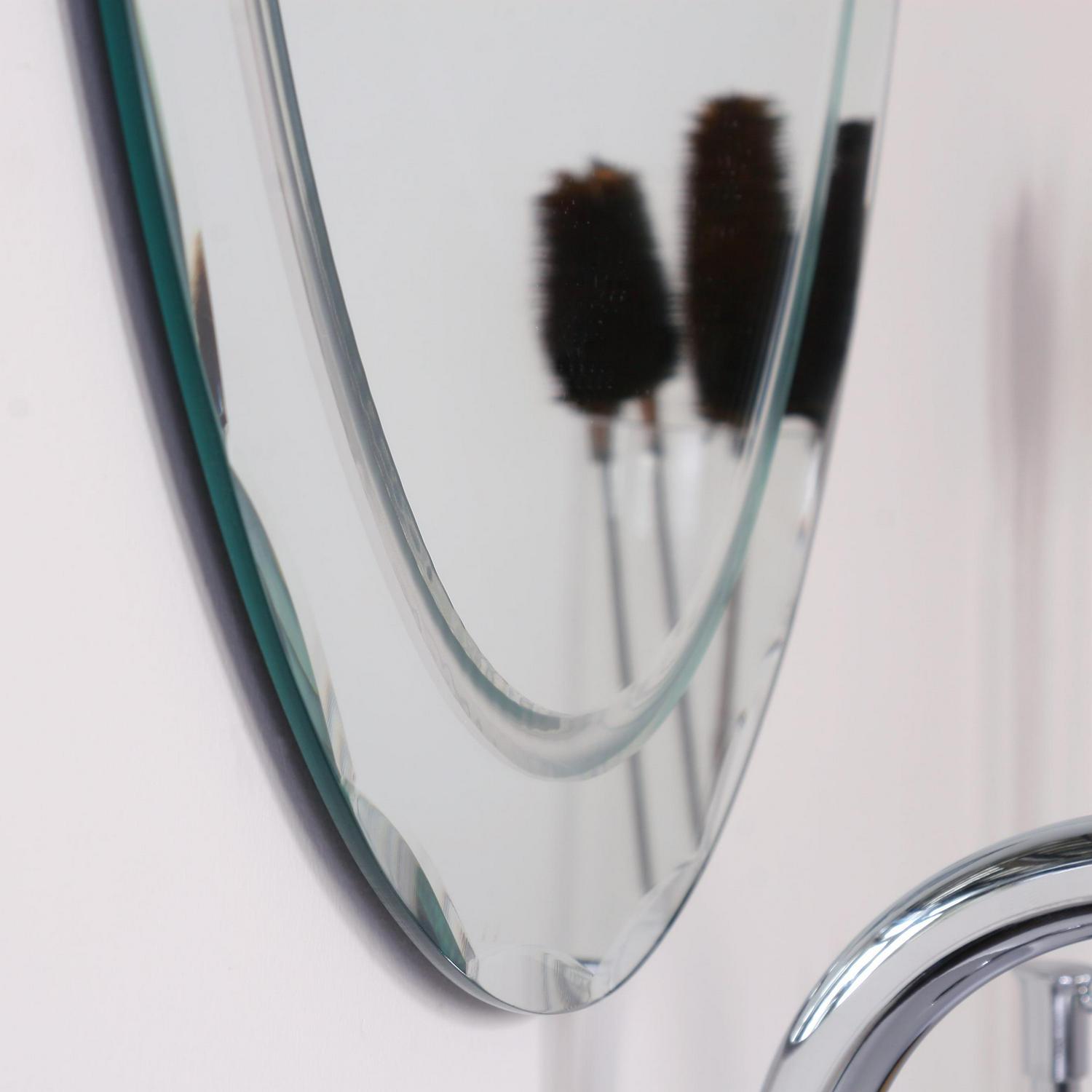 Make a statement with this stylish and modern frameless wall mirror. Perfect mirror for your hallway, living room or bathroom. Frameless ovall mirror has polished scallop beveled edges.