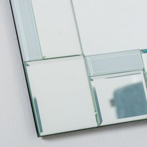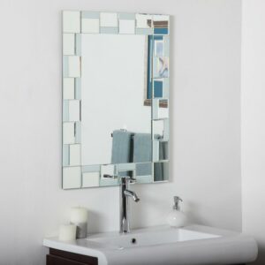 The Quebec Modern Bathroom Wall Mirror – 24W x 32H in. is a reflective mosaic composed of a beautiful center sheet of glass surrounded by 40 hand-cut and beveled pieces. These miniature mirrors draw an impressive border that’s not checkered, but instead displays an eye-catching pattern of inset squares and rectangles forming a sleek border that complements modern décor.