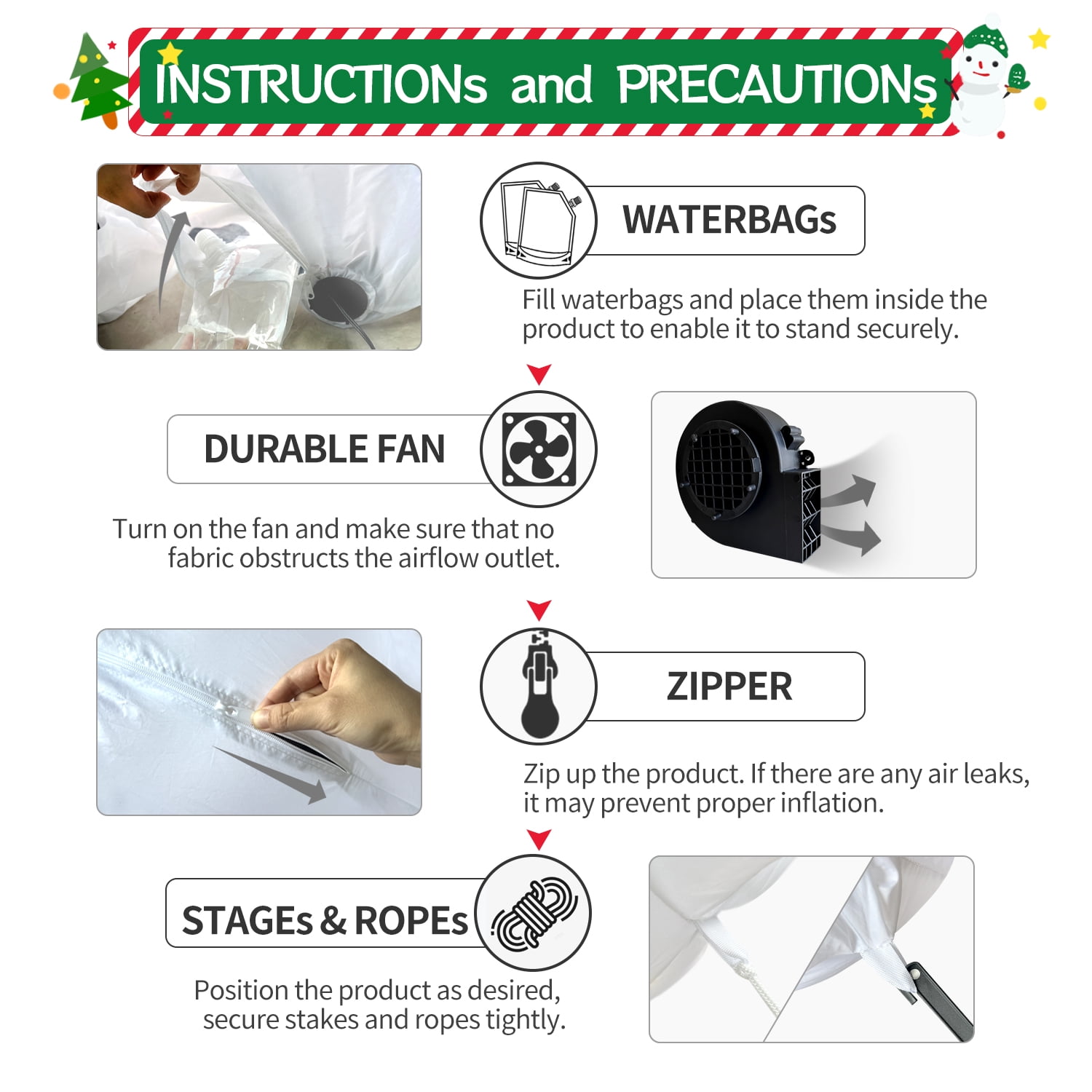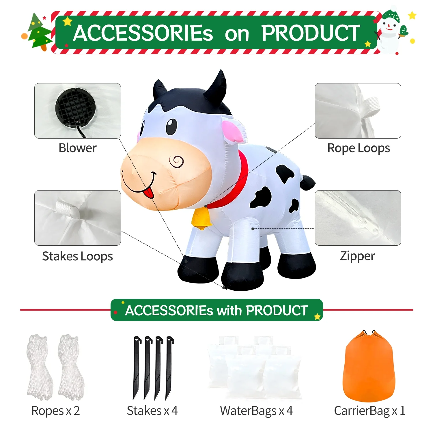 Ideal Christmas Decorations: A superb choice for Christmas Inflatable decorations that spreads delight among your neighbors, friends, and family, infusing the holiday season with added joy. Distinctive Design: This Cute Cow Inflatables brings the joyful ambiance of Christmas. When you place this Christmas decoration in the Yard Lawn Garden or Party, it will be eye-catching in your neighborhood. Excellent Craftsmanship: Our Christmas inflatable decor is crafted with exceptional attention to detail. It is constructed using double-coated high-quality fabric, ensuring durability and longevity. With a powerful blower and premium fabrics, the blow up Cute Cow inflates quickly. Easy Setup and Storage: Self-inflates and deflates. Just plug in the built-in fan, secure it to the ground, and it inflates within seconds. Put in water bags and ropes for stability, no worries about wind blowing the Christmas inflatable decoration away. Instant pop-up Christmas fun.