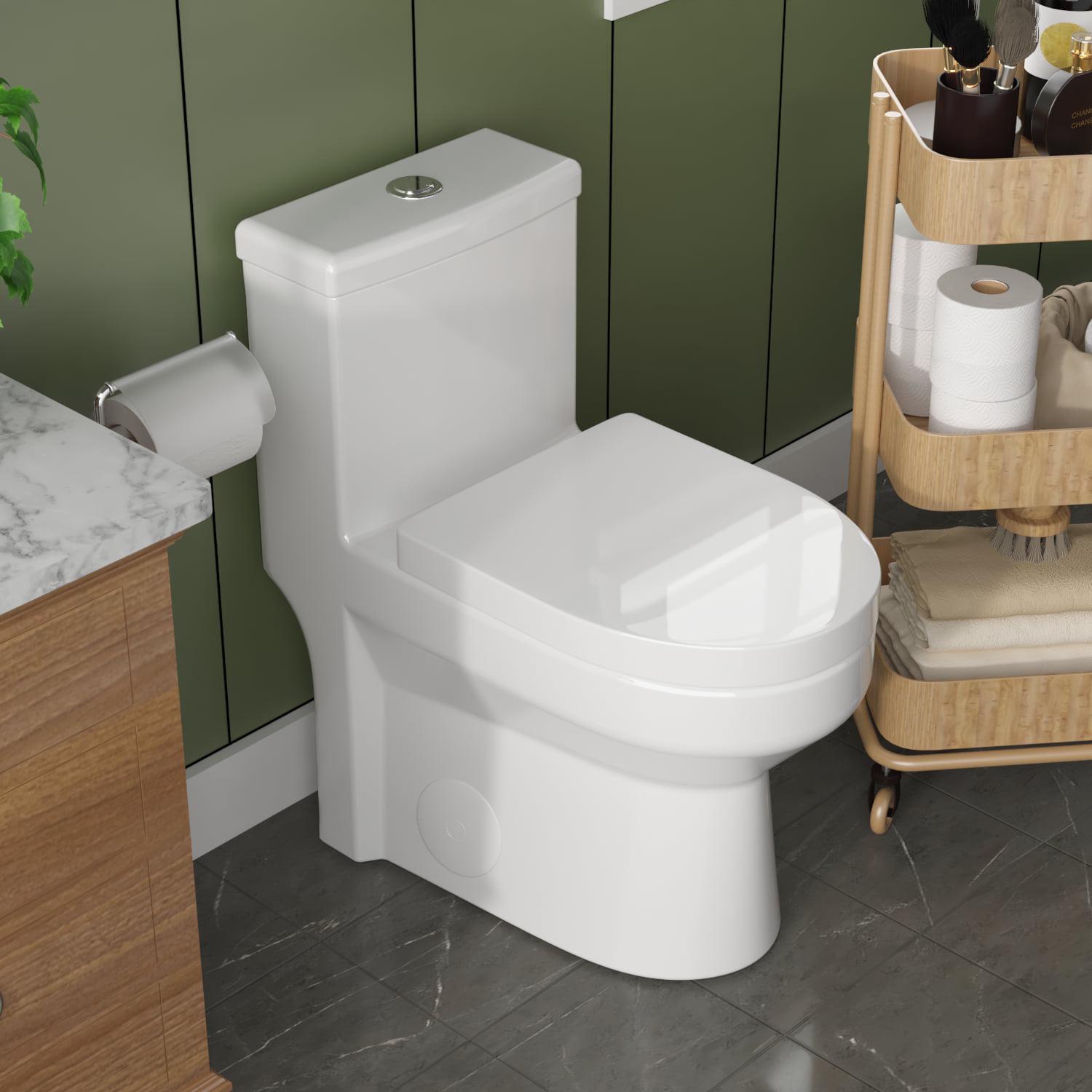 – Space Saver Toilet in Compact Size and Modern Design: This small compact one-piece toilet is smaller than a standard one-piece toilet, so it fits for small Bathrooms or small spaces. Modern design brings sleek and elegant look to your contemporary master or guest bathrooms. It is a wonderful small one-piece toilet for water closets.