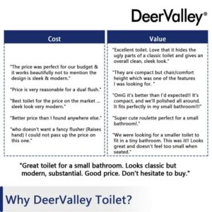 – Siphon Flushing Function, Water Saving Toilet: The trap way of this toilet is fully glazed. Quiet and powerful 0.8/1.28 dual flush with no clogs, leak-proof, highly efficient dual-flush.