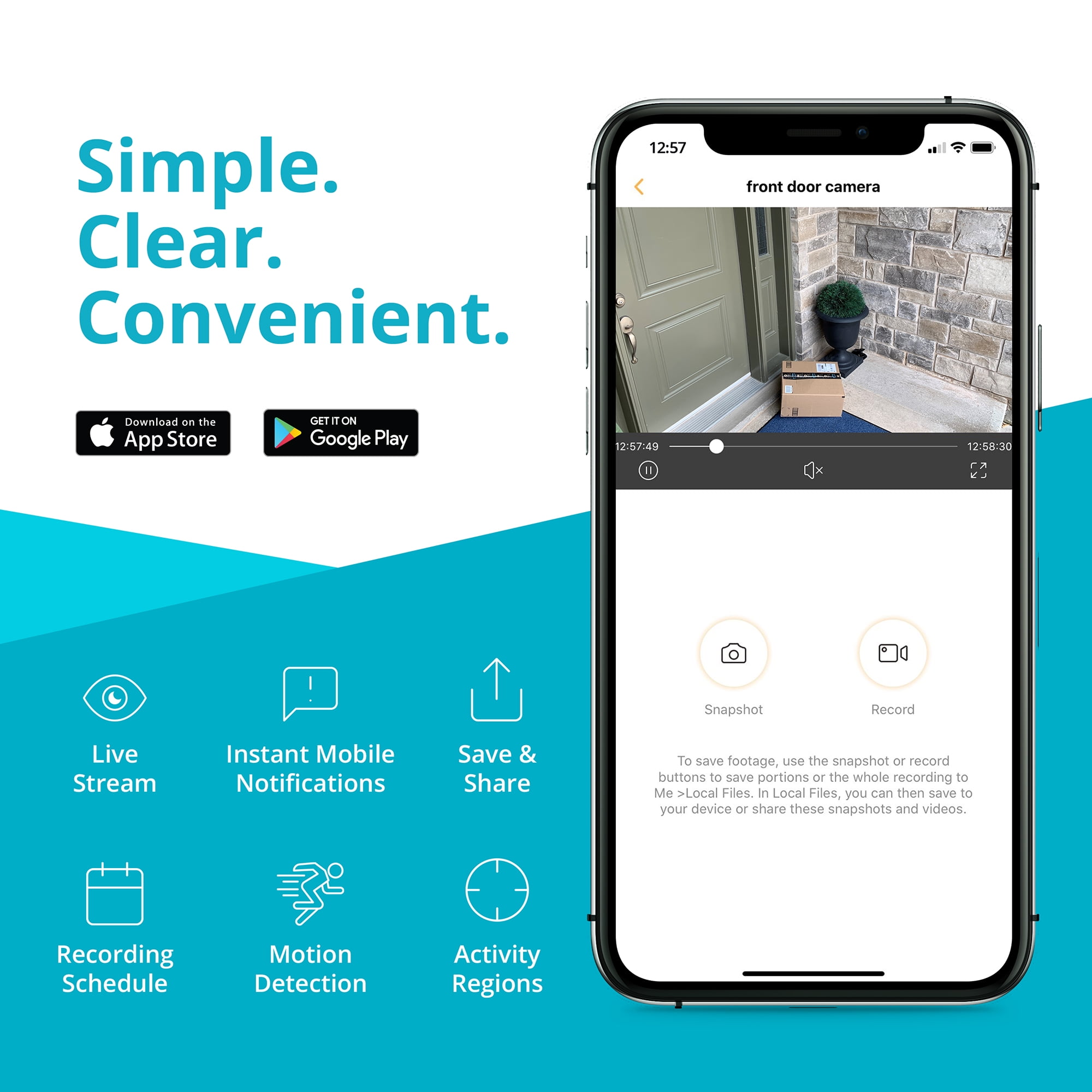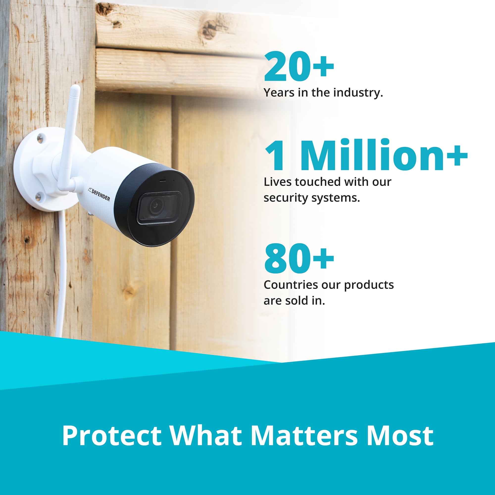 4MP (2K) Resolution for Sharp, Clear Footage Free Defender Guard app for Remote Viewing and Instant Alerts Local Recording to the Included 16GB SD card Means No Monthly Fee
