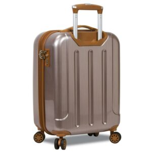– Built-in three digit TSA combination lock, dual wheel design for smooth 360 degree mobility, push-button telescopic handle, silver pewter hardware, top and side grip handles (for 28″ and 24″ only)