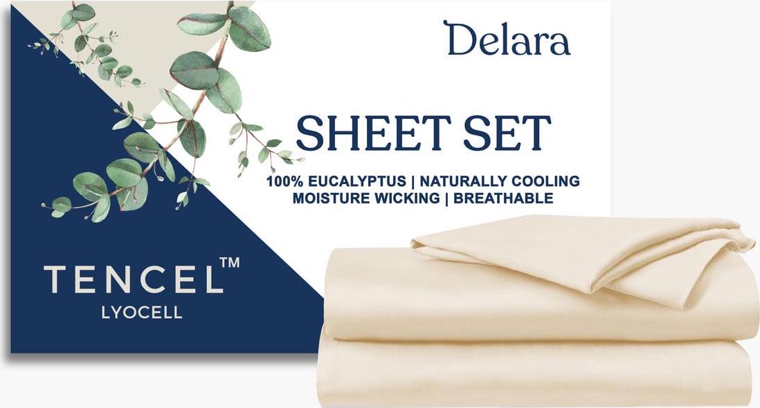 Responsibly made from 100% Eucalyptus Lyocell. TENCEL Lyocell is a sustainably sourced fiber specially made to have zero negative impact on the environment during production. Silky smooth and naturally temperature regulating, TENCEL Lyocell is perfect for hot sleepers or warm temperatures. Delara Eucalyptus Lyocell Tencel Sheets offer superior ventilation to maximize the passage of air and moisture, which helps reduce sweating by keeping your head and body cool throughout the night. The sheets & pillowcases feature quality sewn double-stitched seams to ensure long-lasting durability. TENCEL Lyocell is luxuriously soft and silky, gentle on skin, smooth to the touch, thermal regulating, enhanced breathability, sturdy, and durable.