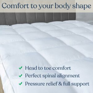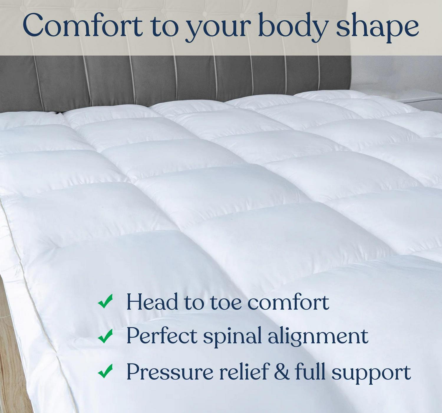 – BREATHABLE AND THICK: Plush 1350 GSM Snow Down Alternative fill, better than many thin mattresses in the market, Overfilled Filling helps relieve back pain. The Quality Filling provides Air Circulation and Good Breathability, taking away excess Heat and Sweat.