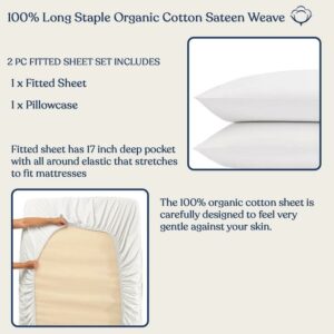 Delara GOTS Certified 100% Organic Cotton Sheets, 2 Piece Fitted Sheet Set, 400TC Long Staple Cotton, Ultra Soft Silky, Moisture-Wicking, Smooth and Breathable, High Quality with Elasticized Deep Pocket