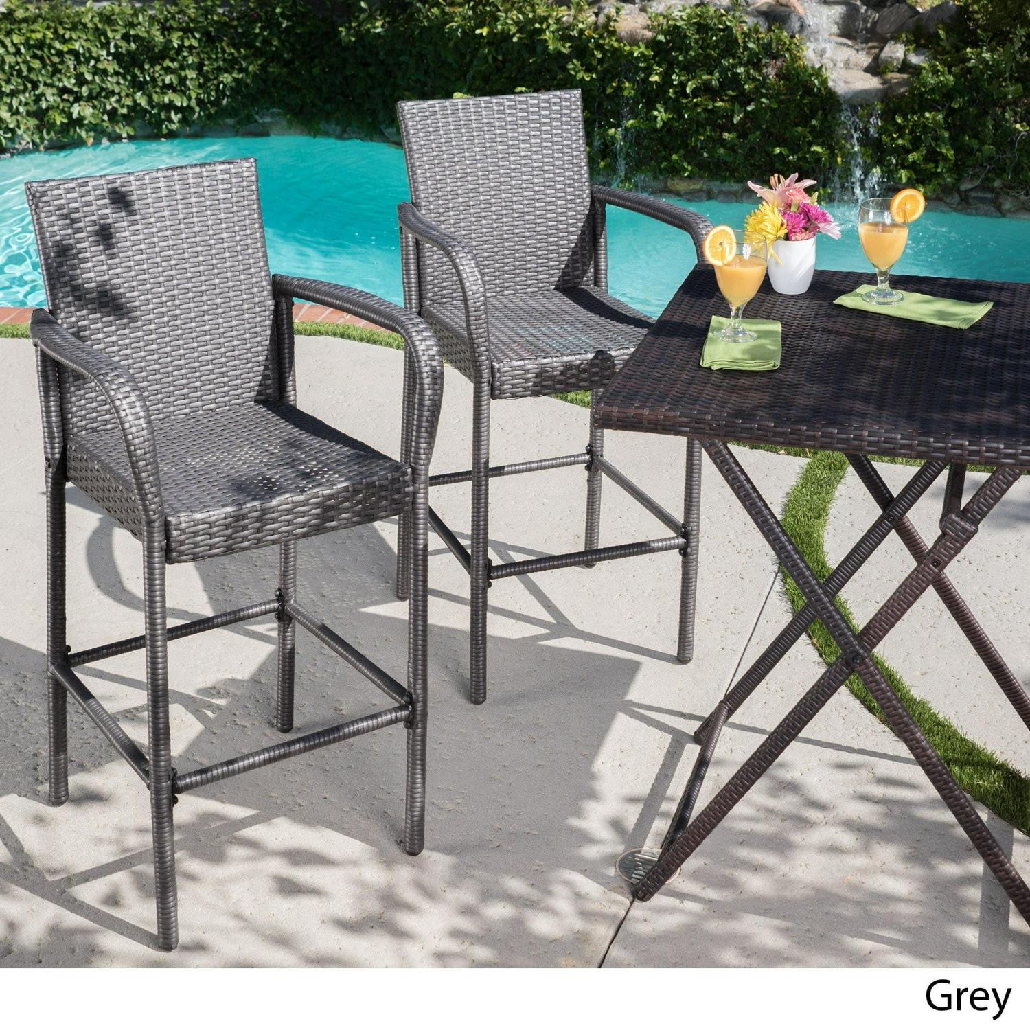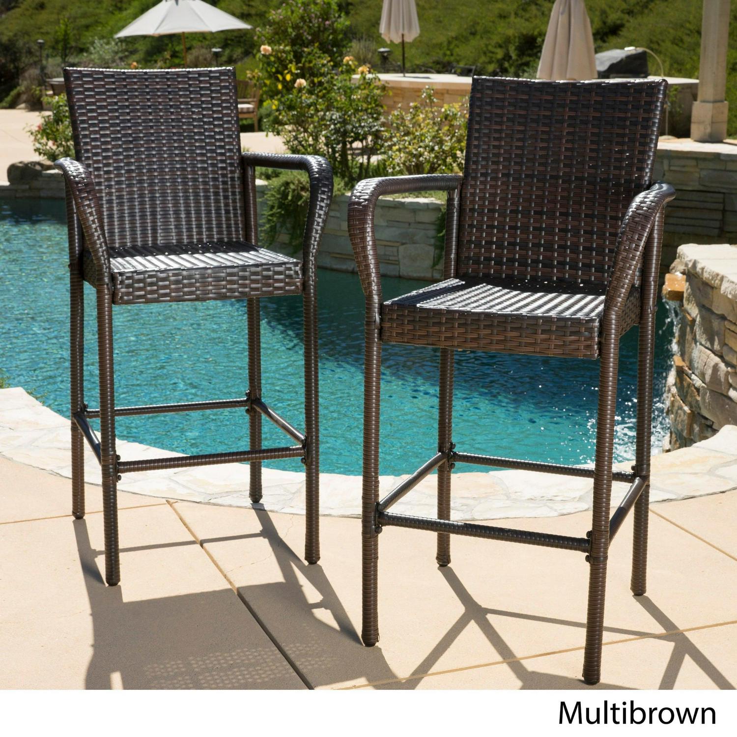 Delfina Outdoor Mix Mocha Wicker Barstool – Set of 2