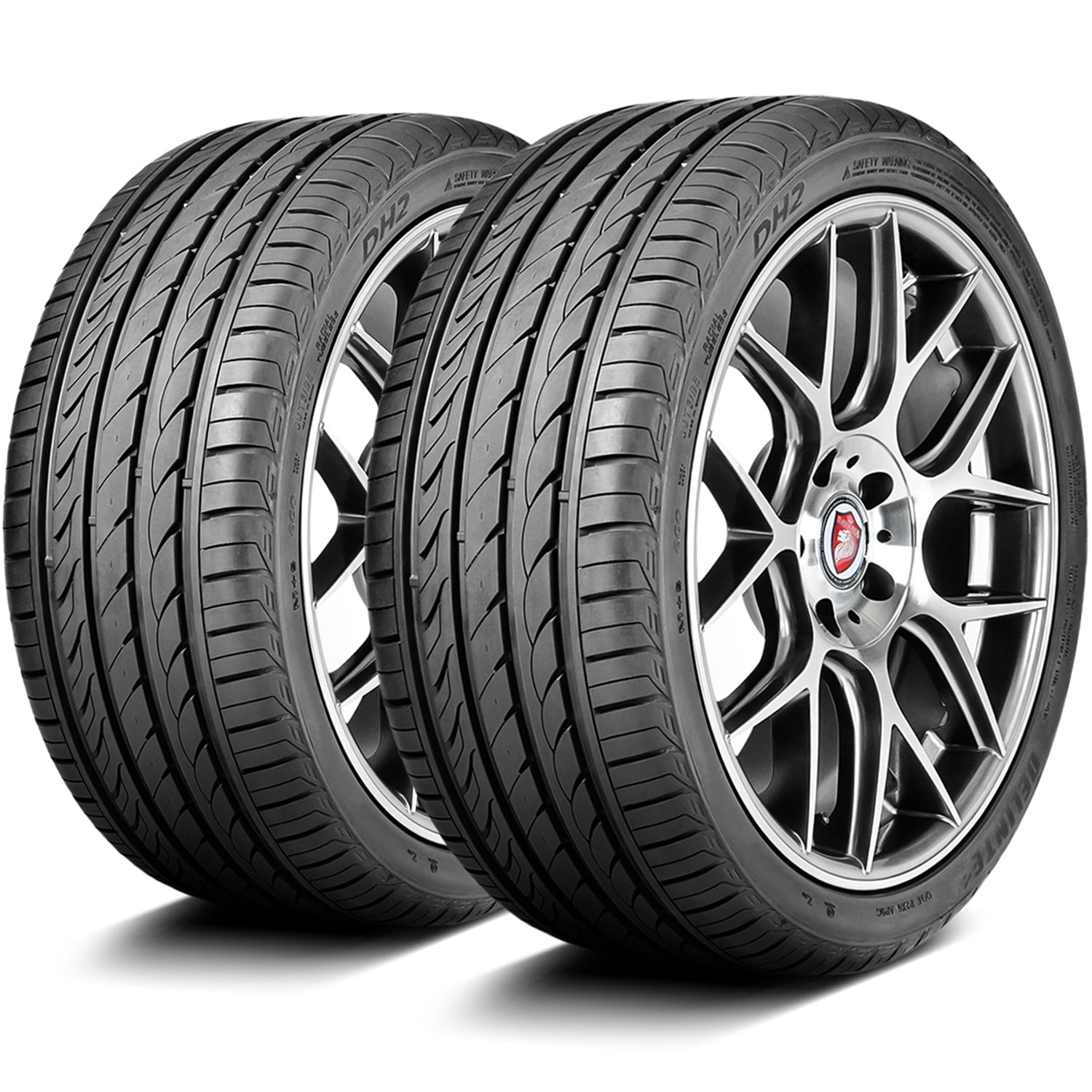 Attention! Due to the size of the tires, Packages might be SEPARATED in the courier facility and not be DELIVERED on the SAME DAY, even though we do ship them together. Tracking information can be checked by logging on to the courier website with the master tracking number you will receive via email. For example, you can receive 3 tires in one day and the 4th one the next day or the day after, or one tire in one day and the second one day after. We understand that this is a big inconvenience for our buyers, however, this is ABSOLUTELY out of our control. Delinte DH2 FEATURES AND BENEFITS All weather traction Enhanced controllability Longer lasting tread life Reduced road noise levels OVERVIEW The Delinte DH2 is a performance and high performance, all season tire manufactured for passenger vehicles and SUVs. This model comes with touring speed ratings as well with certain sizes. Delinte offers a 50,000 mile treadwear warranty with this model. The model ensures excellent controllability in all weather. The asymmetric tread design’s center rib keeps its road contact constantly, which upgrades the steering responsiveness and driving stability. As a result, the steering becomes faster and more precise in its responsiveness to the driver’s instructions, while the structure is stabilized against the driving pressure affecting the model. The shoulder tread block design improves the cornering and maneuvering capability. The shoulder pattern increases the number of biting edges that firmly grip the road surface, improving the tire’s cornering ability and power. The special asymmetric five-pitch tread design and the all season tire compound improve the dry, wet and winter weather road gripping ability. The tread pattern improves the year round road grip, while the compound maintains its flexibility even in colder temperatures. The tread’s wide circumferential and smaller lateral grooves decrease the possibility of hydroplaning when driving through standing water by dispersing water and slush from below the tire’s footprint. In this manner, the tire ensures constant road contact which promotes a safer year round performance. The tire provides a longer lasting tread life. The durable tire compound slows the tread wear rate down while the tires are in motion. The special wear-resistant shoulder tread design manages to prevent irregular tread wear formations. The shoulder tread evenly distributes the driving pressure along the tread area. The equally spread out forces of acceleration, cornering and braking lengthens the tread life and the usability by guaranteeing an extended even tread wear. The DH2 offers a quiet drive. The five-pitch tread design’s closed shoulder pattern manages to lower the road noise levels. The closed shoulder pattern prevents the airwaves from entering the tire’s footprint and coming into contact with the tread elements. As a result, the road and tread pattern noise is not generated while the tires are in motion and it is not heard in the vehicle’s cabin, offering a comfortable and enjoyable driving experience. Manufacturers recommend changing tires every 10 years. As long as tires are properly stored before they are sold, the year of their manufacture will not shorten their service life.