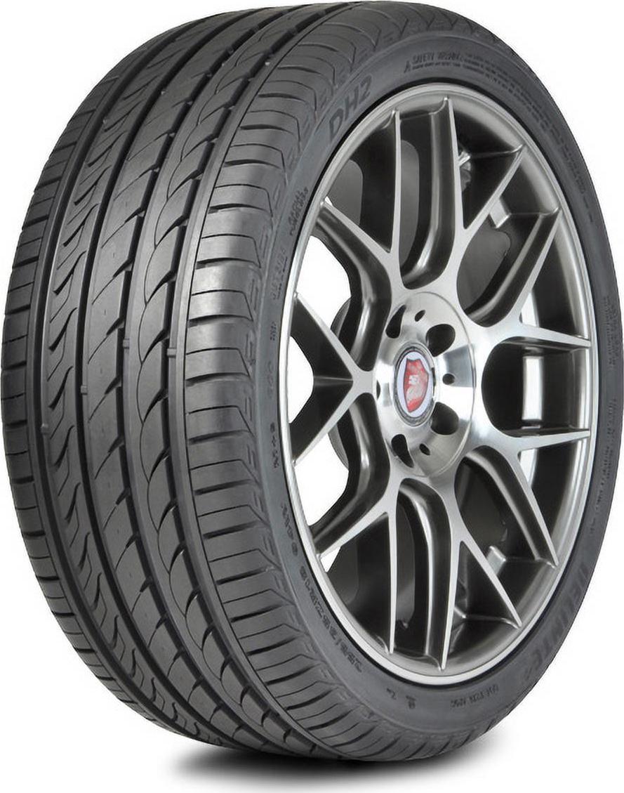 The Delinte DH2 is a performance and high performance, all season tire manufactured for passenger vehicles and SUVs. This model comes with touring speed ratings as well with certain sizes. Delinte offers a 50,000 mile treadwear warranty with this model. The model ensures excellent controllability in all weather. The asymmetric tread design s center rib keeps its road contact constantly, which upgrades the steering responsiveness and driving stability. As a result, the steering becomes faster and more precise in its responsiveness to the driver s instructions, while the structure is stabilized against the driving pressure affecting the model. The shoulder tread block design improves the cornering and maneuvering capability. The shoulder pattern increases the number of biting edges that firmly grip the road surface, improving the tire s cornering ability and power. The special asymmetric five-pitch tread design and the all season tire compound improve the dry, wet and winter weather road gripping ability. The tread pattern improves the year round road grip, while the compound maintains its flexibility even in colder temperatures. The tread s wide circumferential and smaller lateral grooves decrease the possibility of hydroplaning when driving through standing water by dispersing water and slush from below the tire s footprint. In this manner, the tire ensures constant road contact which promotes a safer year round performance. The tire provides a longer lasting tread life. The durable tire compound slows the tread wear rate down while the tires are in motion. The special wear-resistant shoulder tread design manages to prevent irregular tread wear formations. The shoulder tread evenly distributes the driving pressure along the tread area. The equally spread out forces of acceleration, cornering and braking lengthens the tread life and the usability by guaranteeing an extended even tread wear. The DH2 offers a quiet drive. The five-pitch tread design s closed shoulder pattern manages to lower the road noise levels. The closed shoulder pattern prevents the airwaves from entering the tire s footprint and coming into contact with the tread elements. As a result, the road and tread pattern noise is not generated while the tires are in motion and it is not heard in the vehicle s cabin, offering a comfortable and enjoyable driving experience.