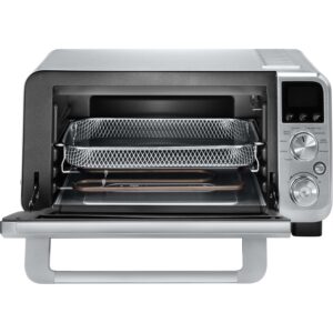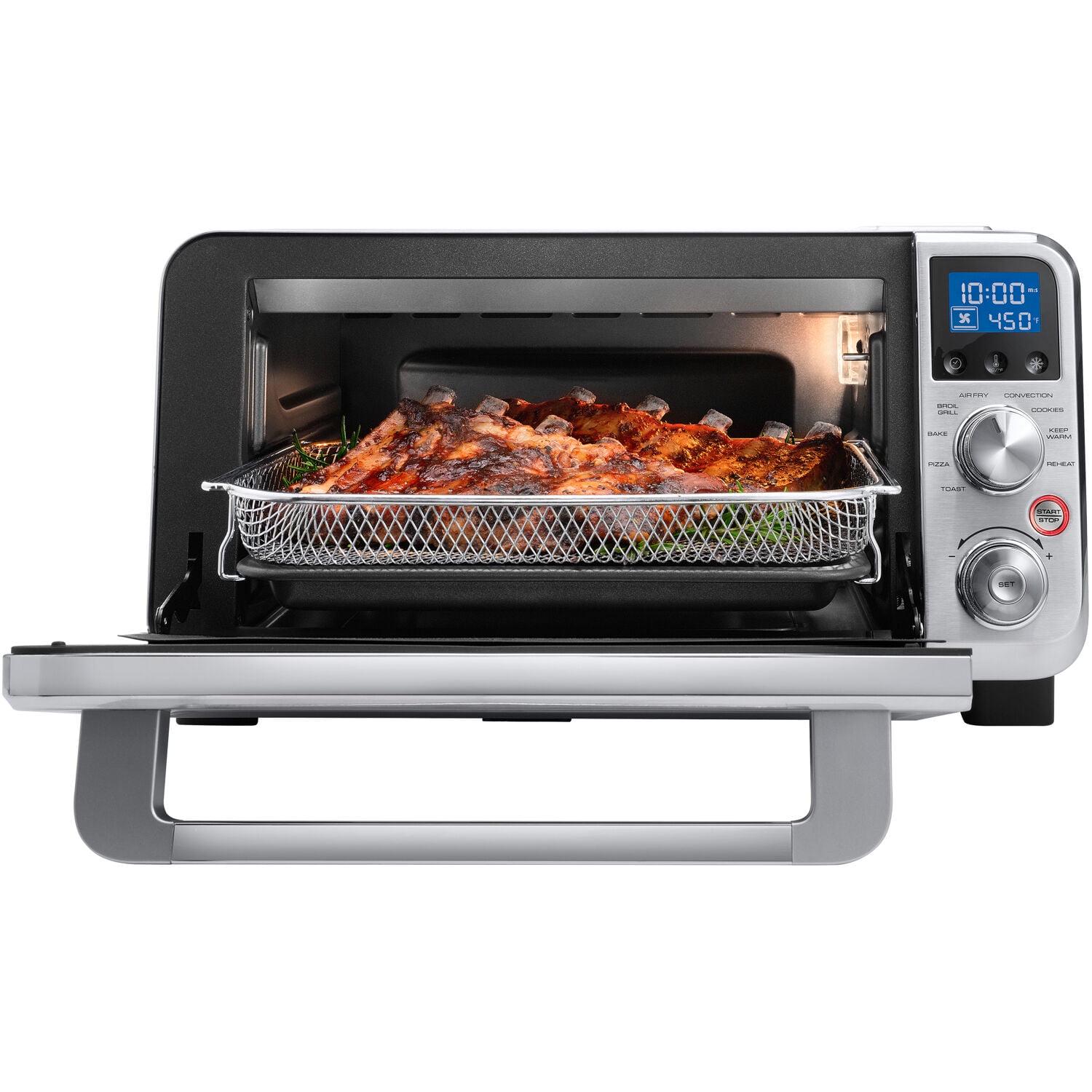 Oven lets you broil, bake, roast, and now air fry with ease while eliminating the need and excess energy and heat of your full-size oven. The power connection system creates quick, crispy, golden results every time with little to no oil thanks to precise heating elements and a fan that rapidly circulates hot air evenly around your food.