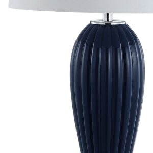 – Bring a sophisticated yet artistic element to your decor with this navy ribbed glass table lamp