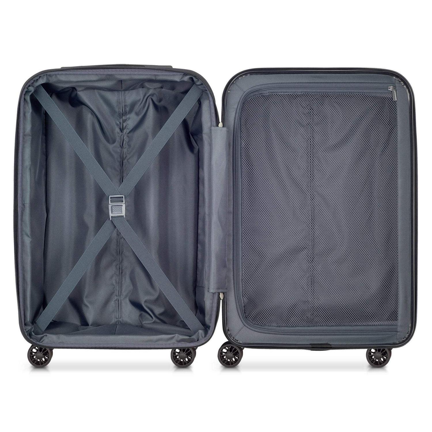 DELSEY PARIS Helium Aero 21″ Hardside Spinner Carry-On Luggage is made from lightweight and durable polycarbonate material while featuring a sleek, ridged exterior for maximal protection. An integrated TSA-accepted combination lock enables you to secure your luggage using your own 3-digit code. It allows the Transport Safety Authority (TSA) to open your luggage using a special key, without damaging it. The main compartment of this carry-on size spinner is expandable for maximum packing flexibility. This feature is great when packing souvenirs on return journeys. The interior includes two full packing compartments with a lined divider and tie-down straps to secure your belongings. Fits in most overhead compartments. The size and weight restrictions for carry-on luggage vary by airline; contact your airline for more information. Backed by a 10-year limited warranty.