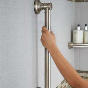 – The popular and versatile 18″ grab bar is an excellent choice for getting in and out of the tub or shower, or on and off the commode