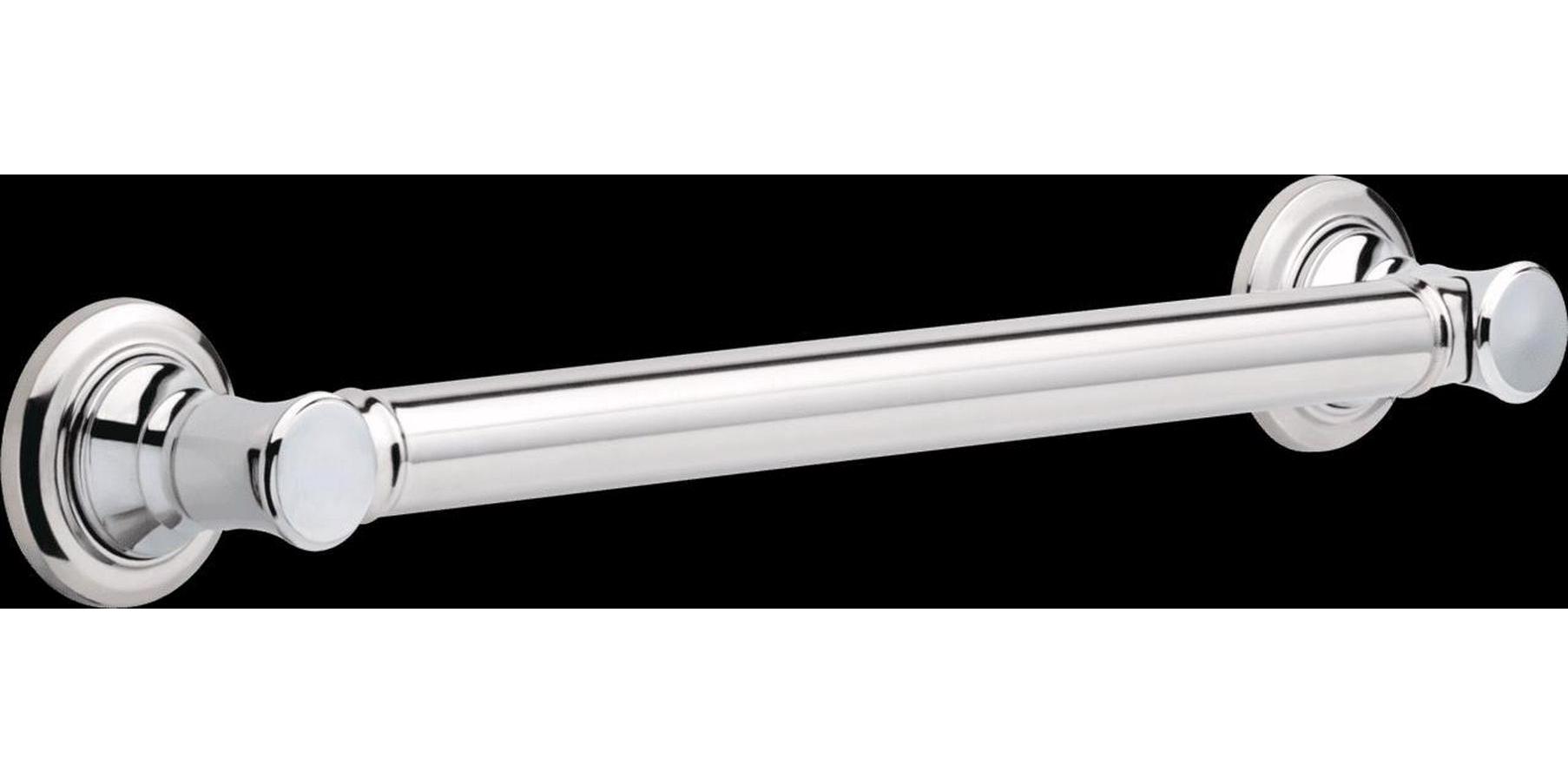 Grab bars provide leverage and support for those moments in your bathroom where you need a little assistance. Grab bars are the perfect addition to any bathroom, for anyone, any age and any ability. They add confidence and independence and most importantly, safety. The traditional style provides warmth and welcome with conservative and refined edges, and symmetry for a familiar and balanced design. The Delta 18″ Traditional Decorative ADA Grab Bar in Polished Chrome features a smooth surface for a simple clean look. When installed properly, it will support up to 500 pounds. With only 2-3 screws required for a secure mount, the five screw flange provides installation flexibility to accommodate individual grab bar mounting needs. Delta is committed to the highest standards in quality and safety, and our grab bars are manufactured and tested to exceed many current industry standards.