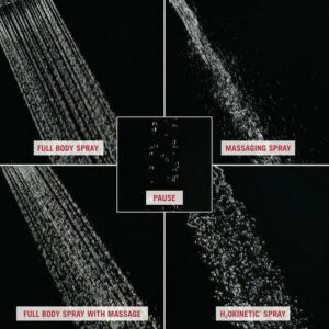 – H2OKinetic Shower: Sculpts water into a unique wave pattern, forming a powerful drench spray