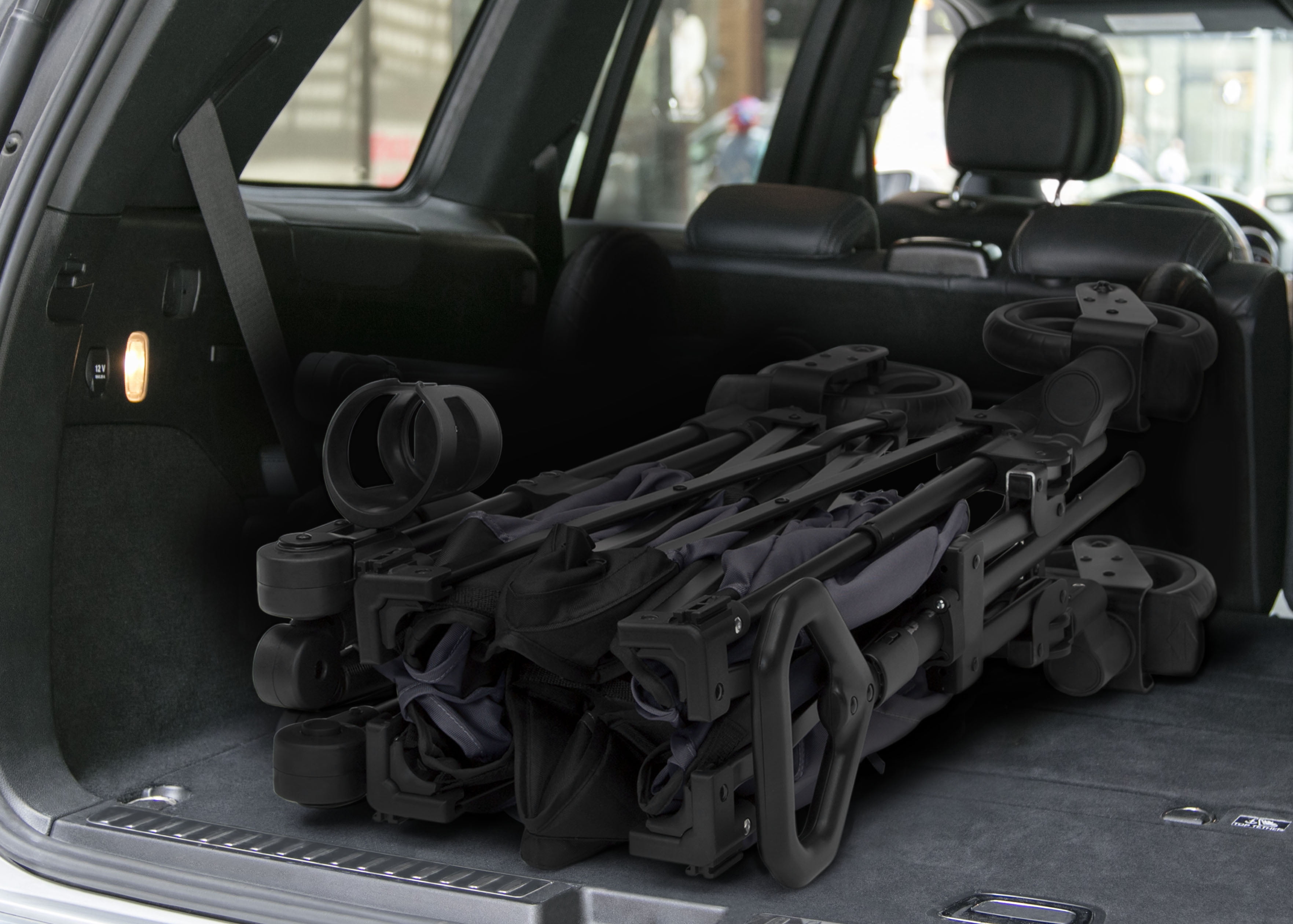 LARGE CAPACITY: Fits 2 kids | Holds up to 110 lbs. (55 lbs. per seat) | For ages 9 months+ (must be able to sit up unassisted) | 8-inch wheels made from puncture-proof EVA airless foam | Swivel front wheels with brakes ensure easy turns/pivots ALL-WEATHER USE: Weather-resistant fabric is suitable for any outdoor occasion | Removable UV blocking canopy, solid and mesh roll-down shades offer privacy/protect kids from the sun/rain | Heavy-duty, rust-resistant steel frame ensures long-lasting use TONS OF STORAGE: Removable center console with cup holder and storage pocket allows kids to share snacks, toys and drinks | Outside pockets and parent cup holder provides additional storage ADJUSTABLE PULL/PUSH HANDLES: Pull handle length is adjustable for your comfort-minimum of 35.5”H to a maximum of 40.5”H | Push/pull handlebar on the other side also features a number of height positions SAFE OPTION: Stroller certified and thoroughly tested | Features 2 cushioned seats with 3-point safety harnesses Compact fold for easy transport/storage Assembled size: 51″D x 19.7″W x 44″H Folded size: 16.9″D x 12.6″W x 31.5″H | Weighs 36.3 lbs.