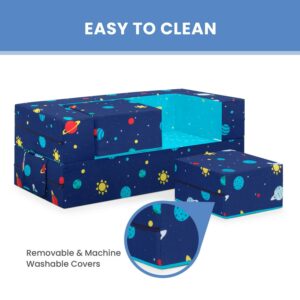 Delta Children Convertible Sofa and Play Set for Toddlers and Kids a Modular Foam Couch and Flip Out Lounger with 2 Ottomans, Spaceship