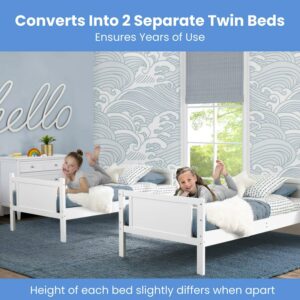 Delta Children Convertible Twin Over Twin Wood Bunk Bed with Ladder and Guardrails a Use as Bunk Bed/2 Stand-Alone Twin Beds a Bed Ships in 2 Separate Boxes, White