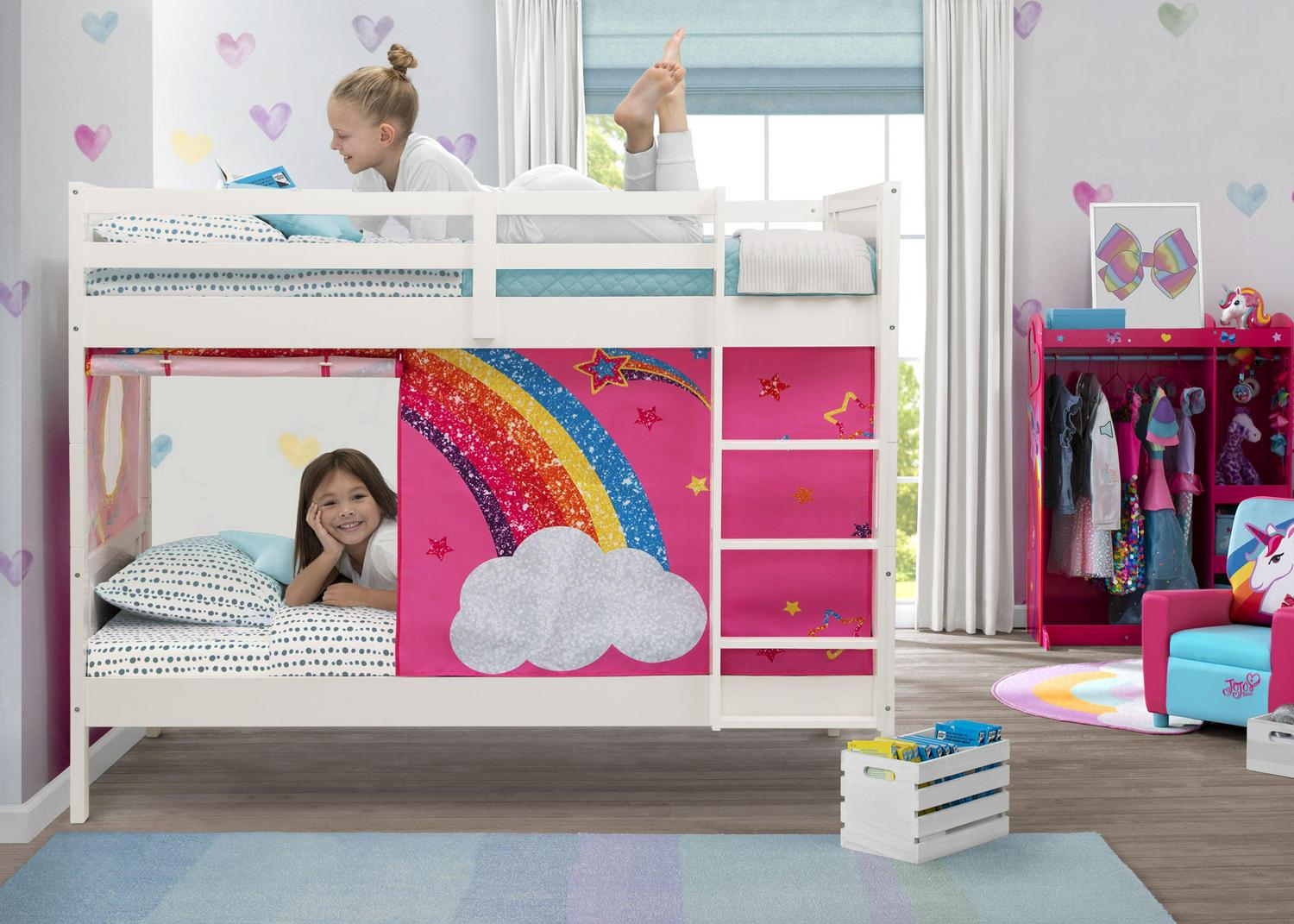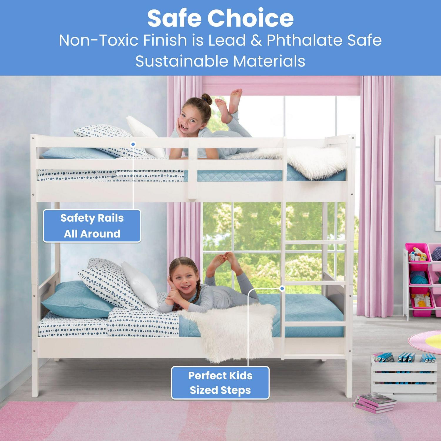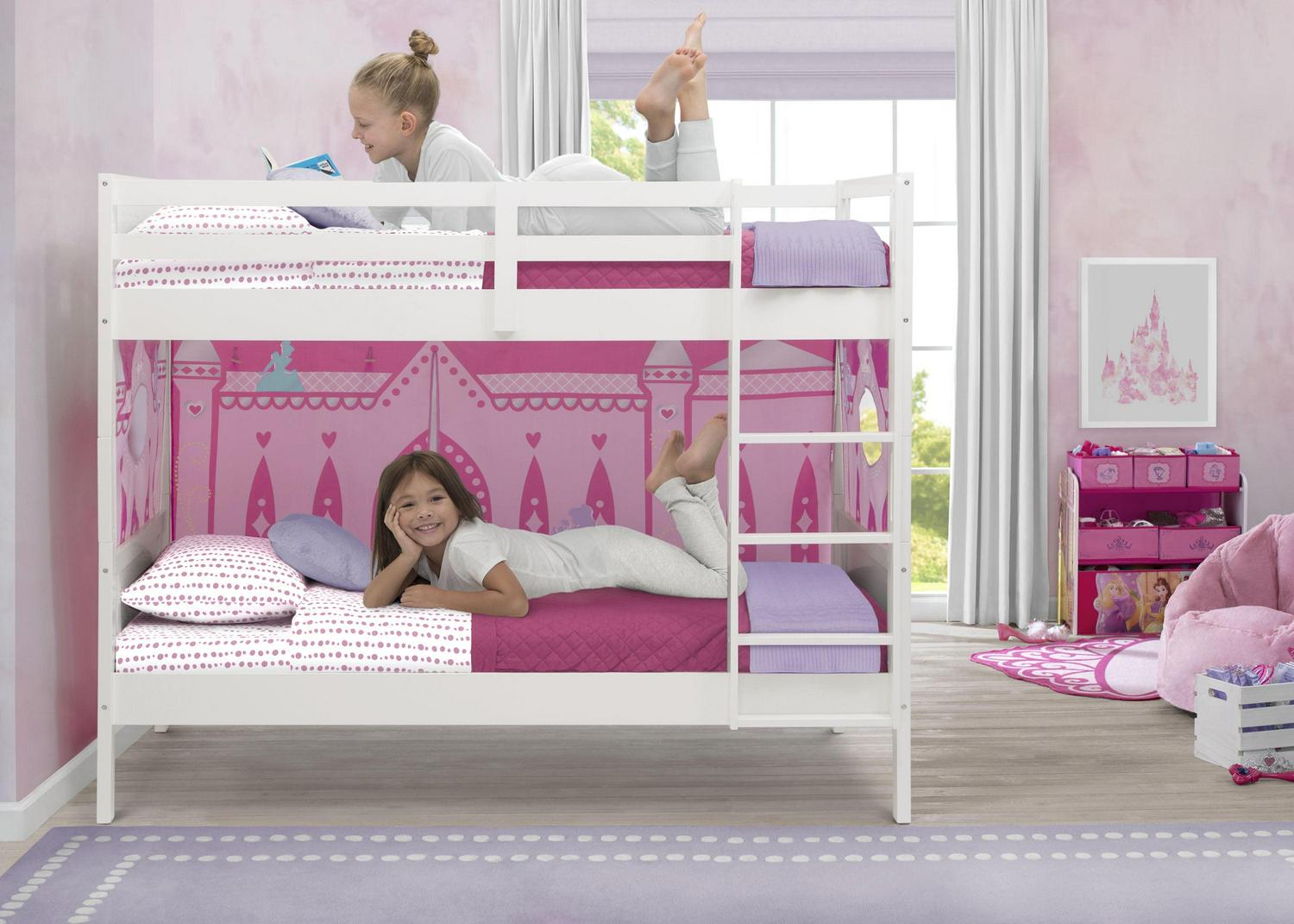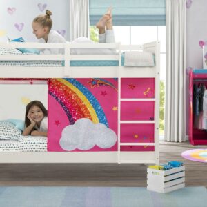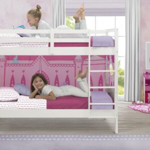 This Convertible Twin Over Twin Wood Bunk Bed with Ladder and Guardrails by Delta Children is the perfect solution for shared or small spaces. Beautifully made and incredibly versatile, this bunk bed provides the flexibility to convert into two separate twin beds. The bed’s classic design ensures it coordinates with any decor, and it’s constructed from made-to-last materials to ensure safety, stability, and longevity. The top bunk features a 14-inch guardrail all around to keep your little one safe throughout the night. Pair this bunk bed with coordinating tents by Delta Children to complete your bedroom (tents sold separately). Assembly required. The Consumer Product Safety Commission recommends that top bunks not be used for children under 6 years of age. Mattresses are not included.