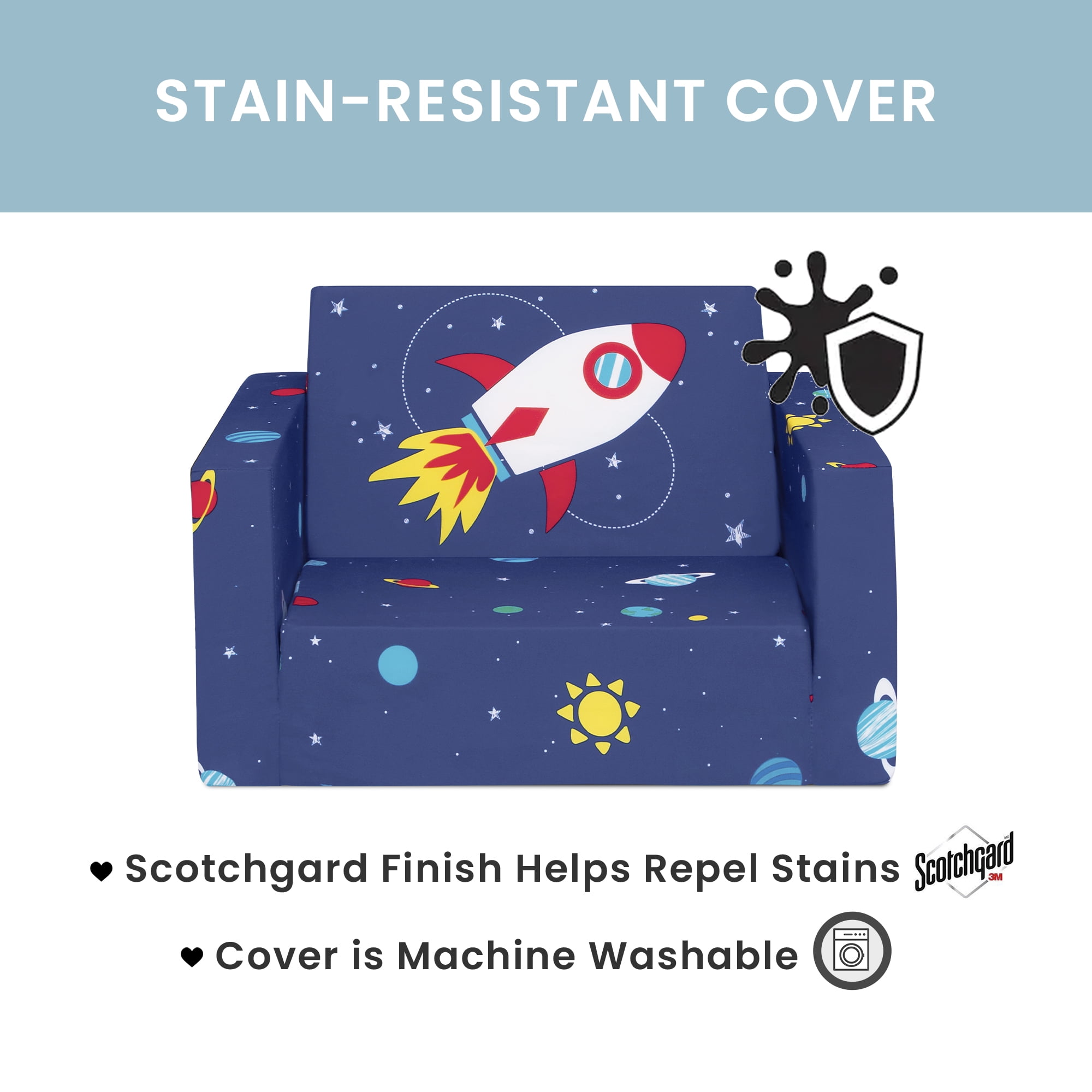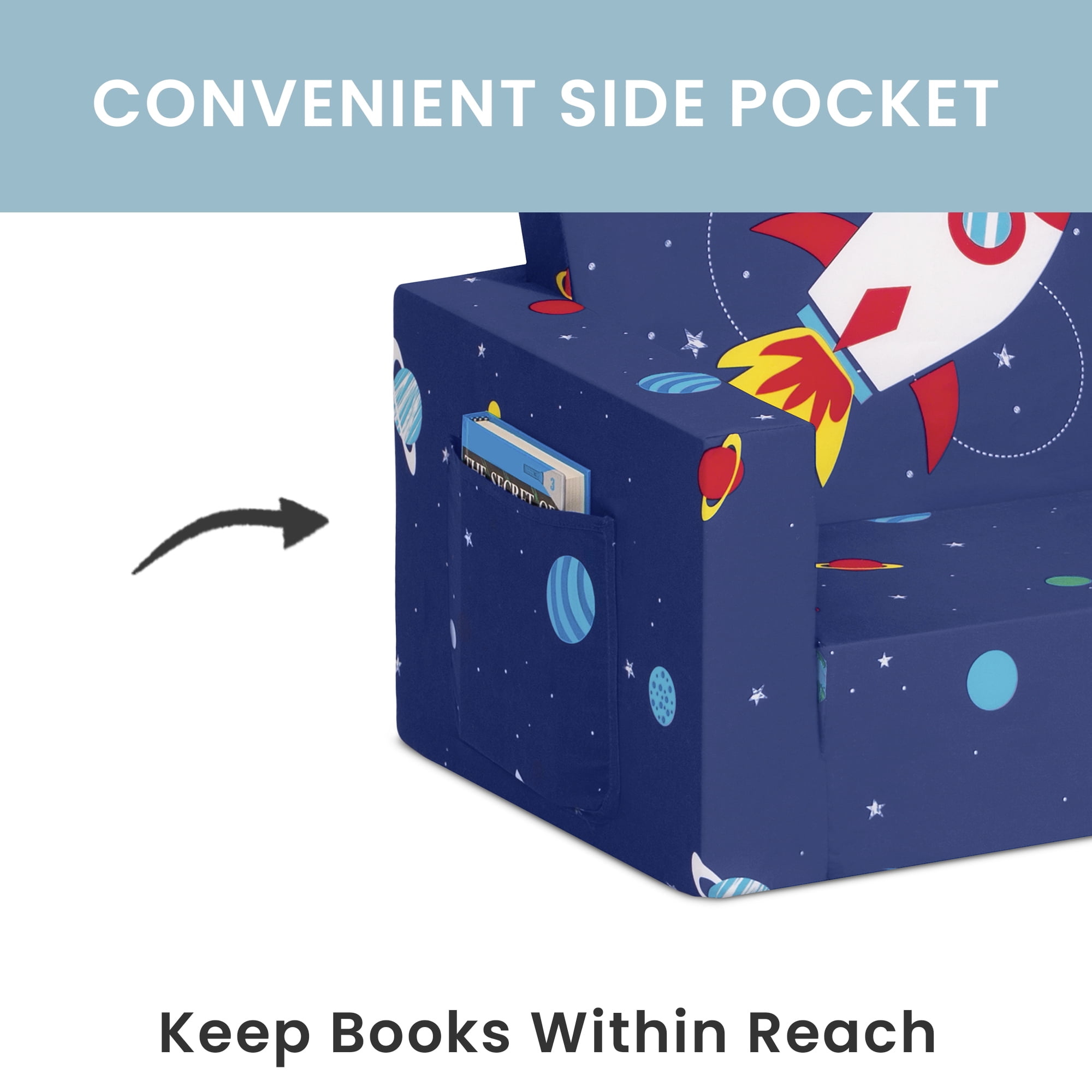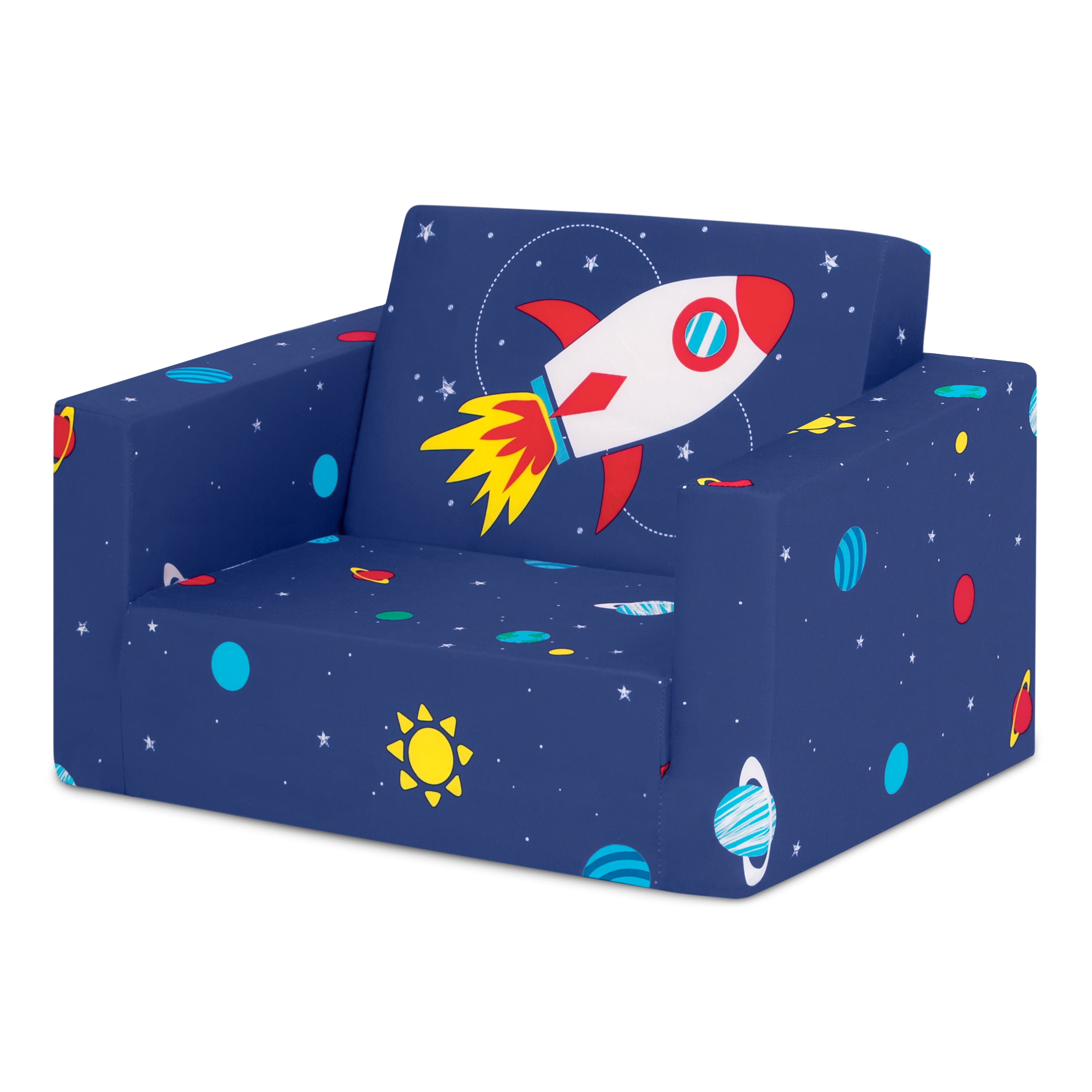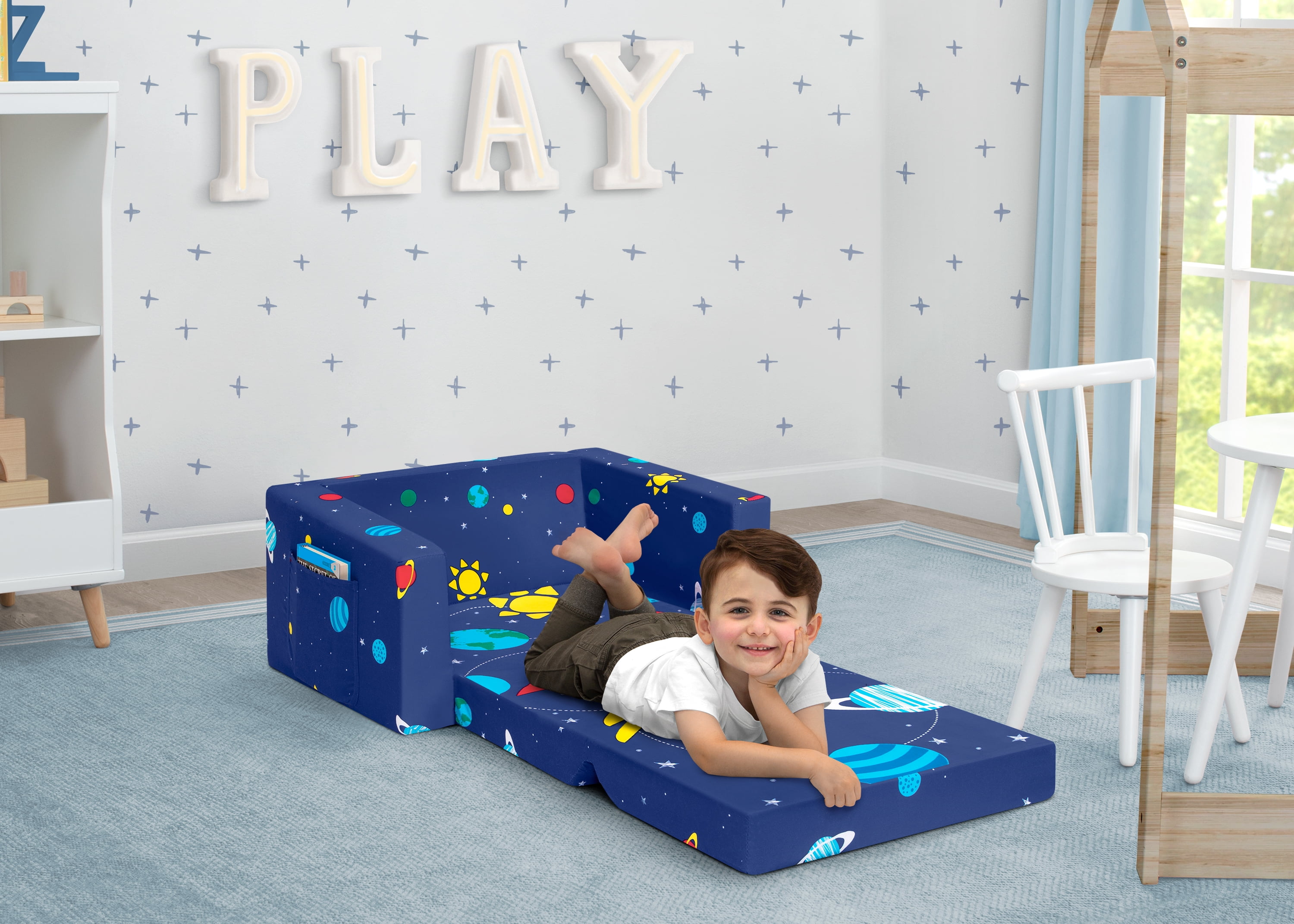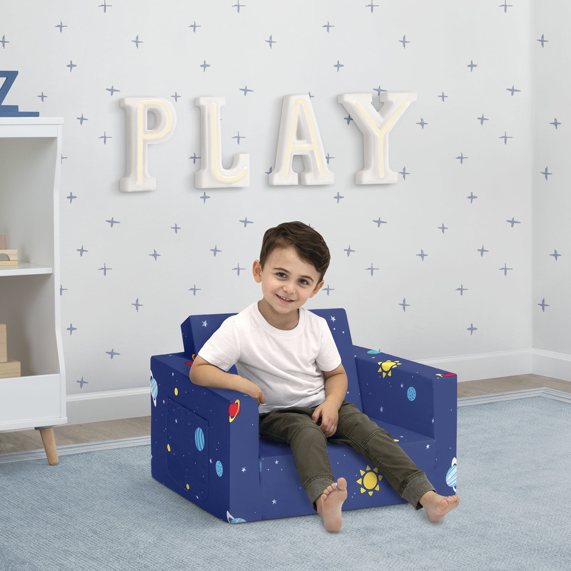 Delta Children Cozee Flip-Out Chair – 2-in-1 Convertible Chair to Lounger for Kids, Space