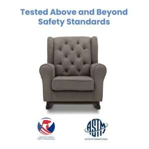 No nursery is complete without a plush rocking chair, and the Emma Nursery Rocking Chair from Delta Children in Graphite is the perfect addition to your baby’s space. Crafted to comfort tired babies and parents, this chair features a thickly padded seat cushion and armrests, plus it sits above wood rocker feet that create a smooth swaying motion. Its classic wingback silhouette, tufted accents, microfiber upholstery and dark chocolate finish on the wood feet allow for it feel right at home in a nursery, living room or any shared space that needs a cozy spot. Delta Children was founded around the idea of making safe, high-quality children’s furniture affordable for all families. They know there’s nothing more important than safety when it comes your child’s space. That’s why all Delta Children products are built with long-lasting materials to ensure they stand up to years of jumping and playing. Plus, they are rigorously tested to meet or exceed all industry safety standards.