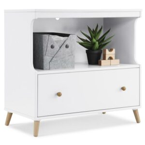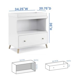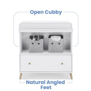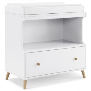 – VERSATILE STORAGE: This changing table features an open cubby above a large drawer for plenty of storage space | Included changing top is removeable
