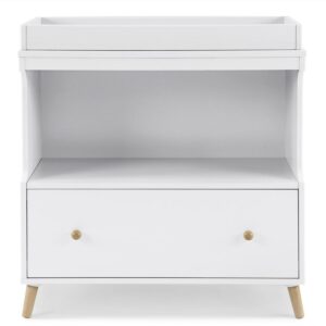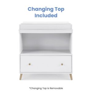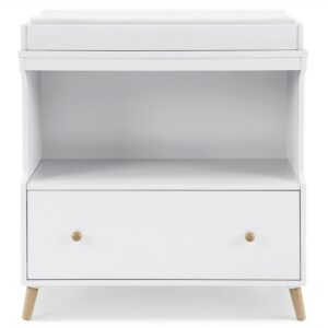 Delta Children Essex Convertible Changing Table with Drawer, Greenguard Gold Certified, Bianca White/Natural