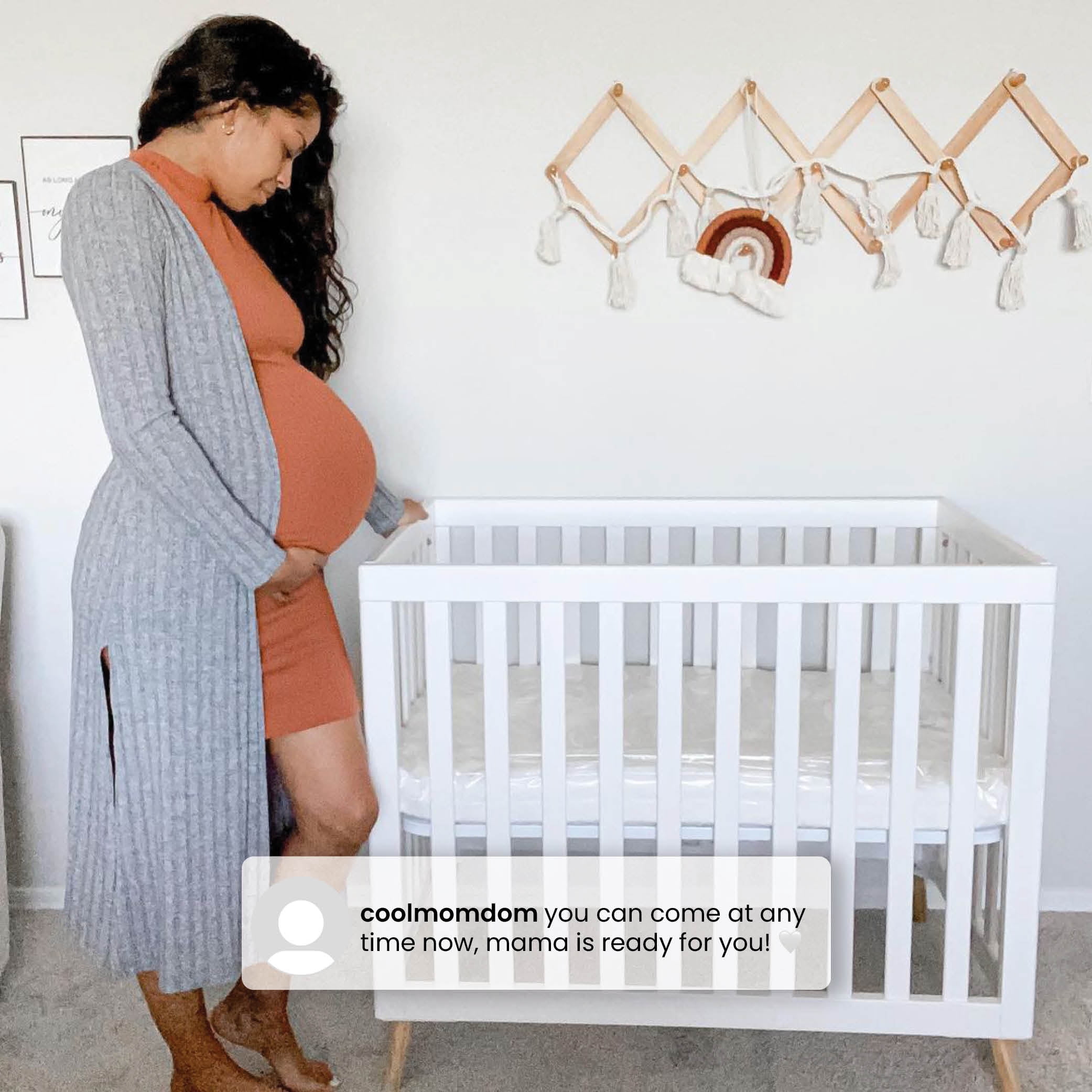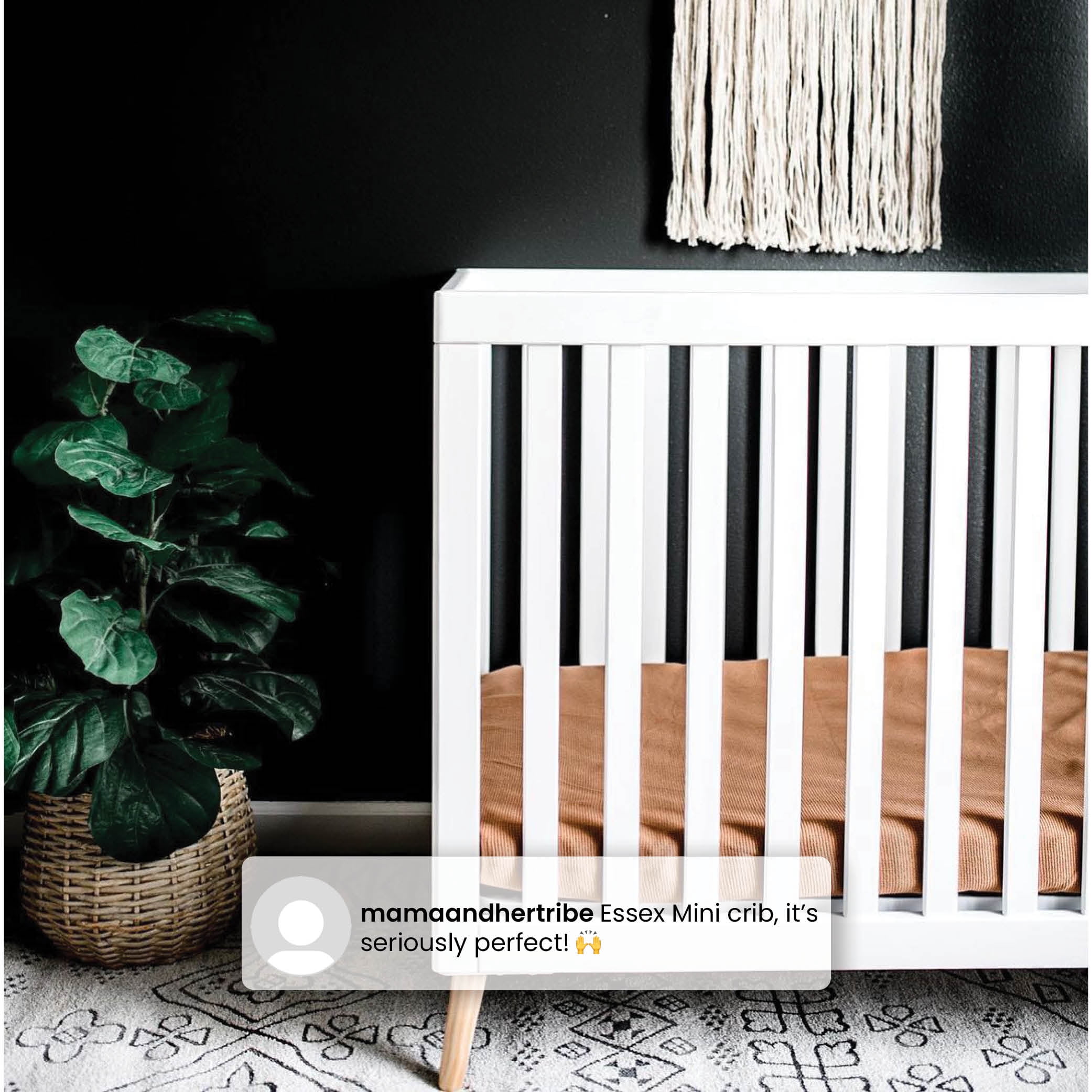 The Essex convertible mini baby crib with a 2.75-Inch mattress by Delta Children is full of modern style, safety features, and craftsmanship, just in a scaled-down size. Designed for urban spaces, smaller nurseries, or as a spare crib for grandma and grandpa’s house, this versatile mini crib features angled feet in a natural finish, two adjustable mattress positions that allow you to lower the mattress height as the baby grows, plus it includes a comfy, water-resistant crib mattress. Extending its value well past the nursery, the Essex convertible mini baby Crib by Delta Children converts into a twin bed with or without a footboard when the time is right (conversion rail sold separately).