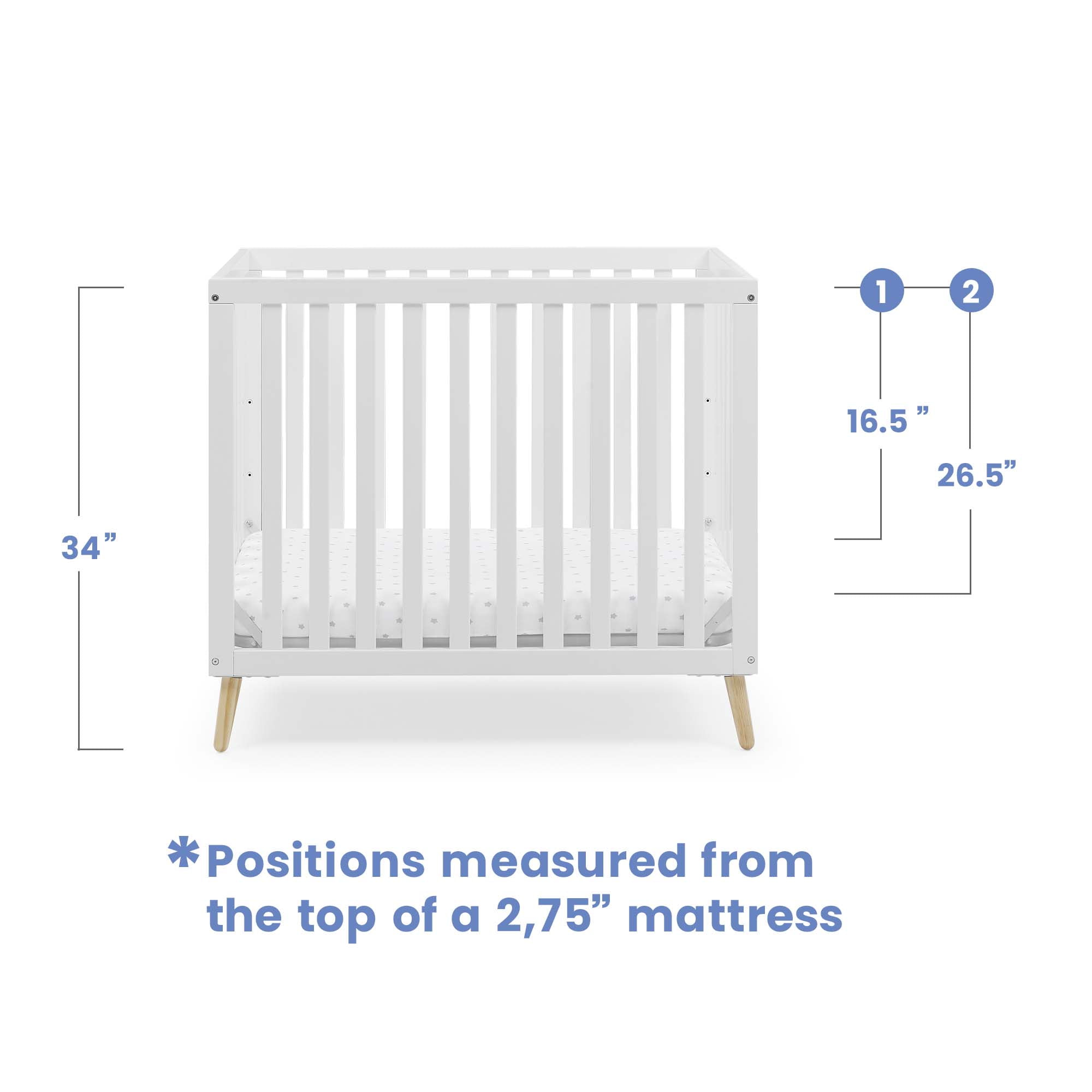 Delta Children Essex Convertible Mini Baby Crib with 2.75-Inch Mattress, Bianca White/Natural