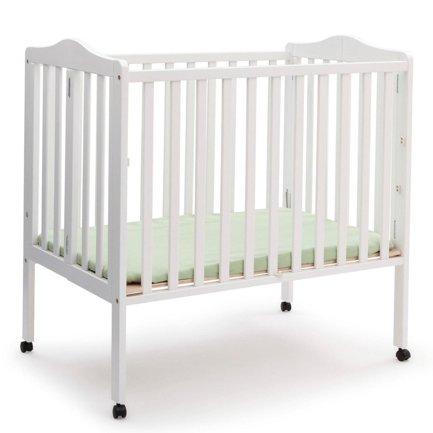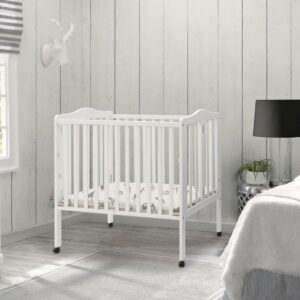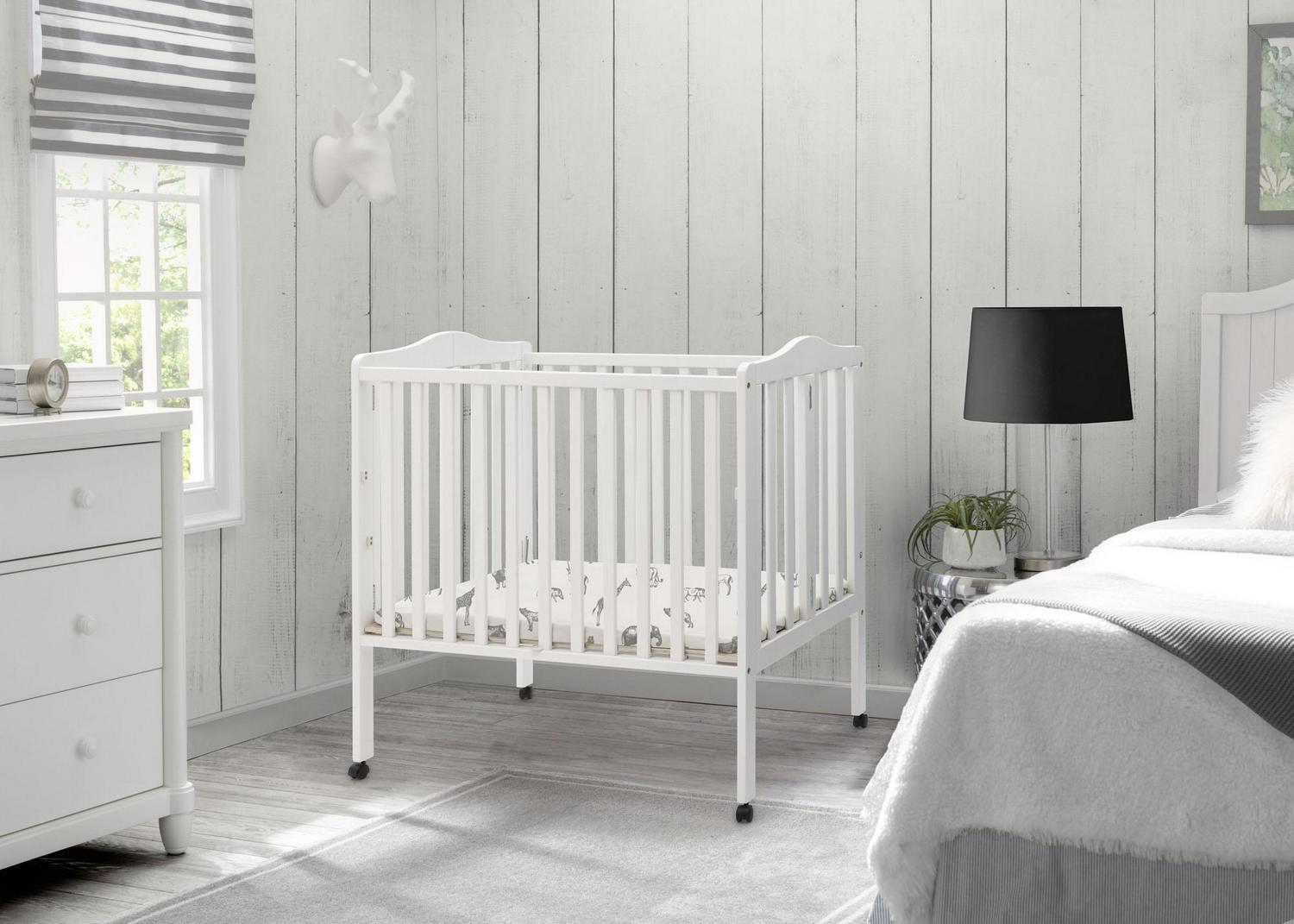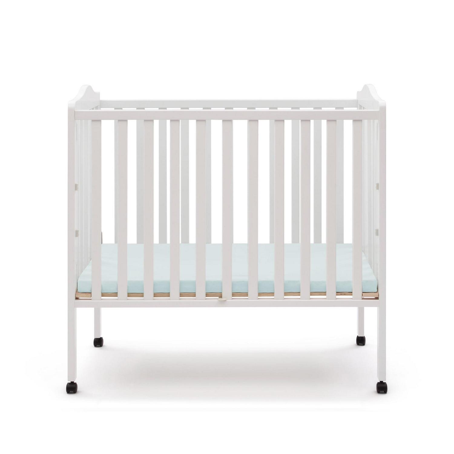 Delta Children Folding Portable Baby Mini Crib with 1.5-inch Mattress, White