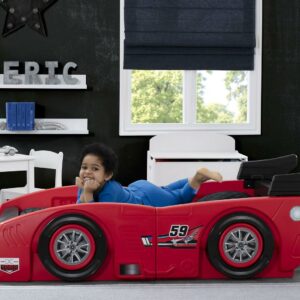 Your little racer will be on the road to a good night’s sleep in no time with the Grand Prix Race Car Toddler-to-Twin Bed by Delta Children. This sleek bed resembles a racetrack-ready car with realistic details, like an aerodynamic spoiler, as well as 3D accents and decals that accentuate the headlights, wheels, and exhaust. Its grow-with-me design starts out as a toddler bed, then easily converts into a twin bed by inserting four included panels that extend the length and width of the bed. To ensure your child’s safety the mattress sits low in the bed frame while the sides of the car act as secure guardrails. Take it for a spin today!Delta Children was founded around the idea of making safe, high-quality children’s furniture affordable for all families. They know there’s nothing more important than safety when it comes to your child’s space. That’s why all Delta Children products are built with long-lasting materials to ensure they stand up to years of jumping and playing. Plus, they are rigorously tested to meet or exceed all industry safety standards.