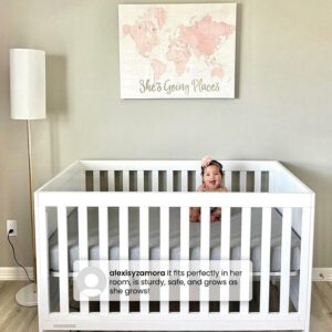 – ADJUSTABLE HEIGHT: Adjustable height mattress support with 3 convenient positions to grow with your baby |ACCESS RAIL DIMENSIONS: From Floor: 34.25″; From Top Mattress Support Position: 16.50″; From Bottom Mattress Support Position: 26.50″