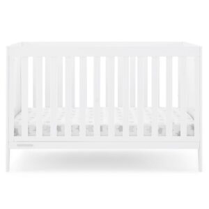 The Hayes 4-in-1 Convertible Crib by Delta Children raises the bar on style and responsible design with a modern silhouette and GREENGUARD Gold Certification, contributing to cleaner air in your home. Solid panels on both ends are set against painted slats. Crafted-to-last, this crib is designed for the baby years and beyond. The crib s adjustable mattress support allows you to lower the mattress height as your baby grows. When your child is ready, its versatile design easily adapts from crib to a cozy toddler bed, daybed and sofa (Daybed/Sofa Rail included; Toddler Guardrail # W100825 sold separately). Available in Bianca White and Charcoal Grey. Coordinates with the Hayes Fabric Bin Changer and Hayes Rocking Chair.
