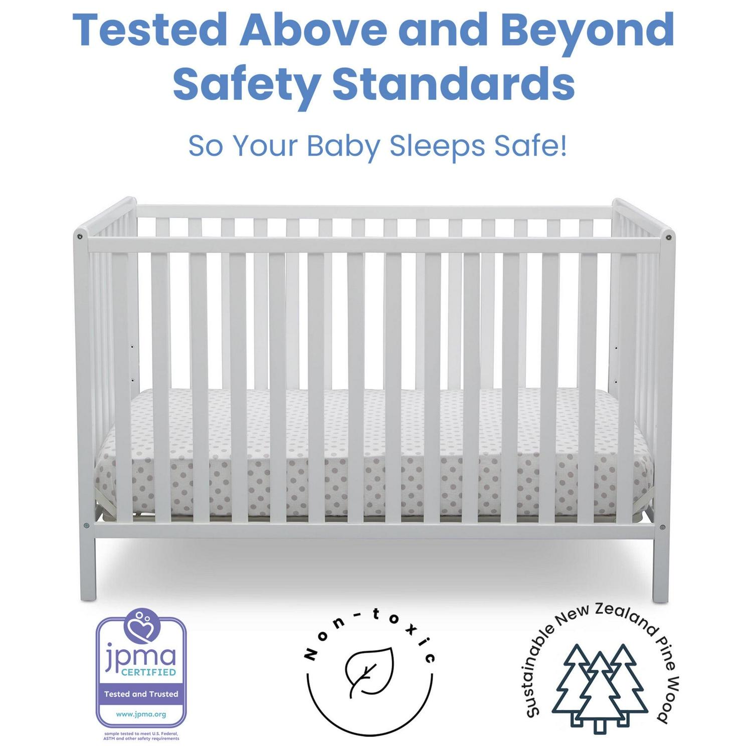 - Adjustable height mattress support with 3 convenient positions to grow with your baby