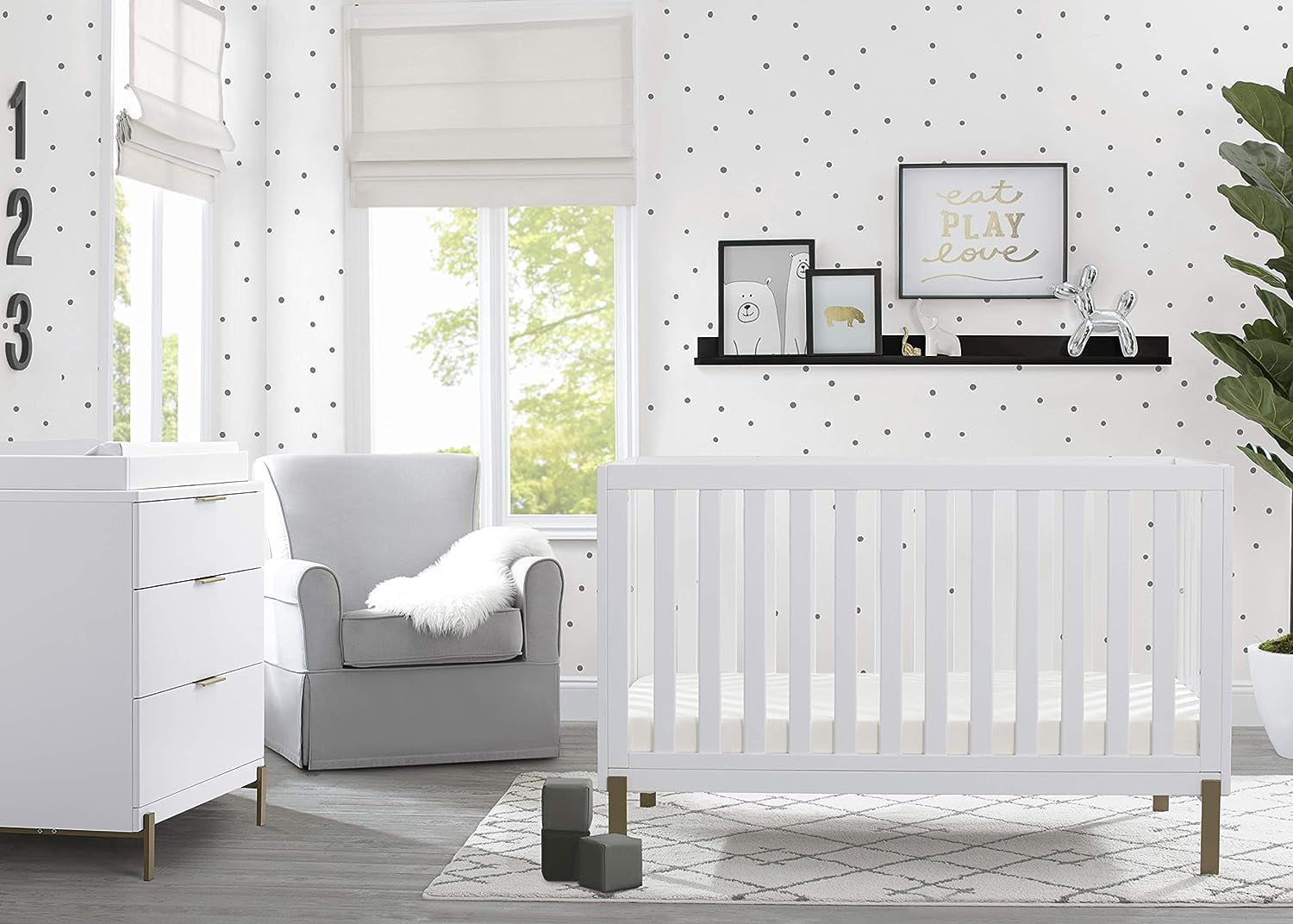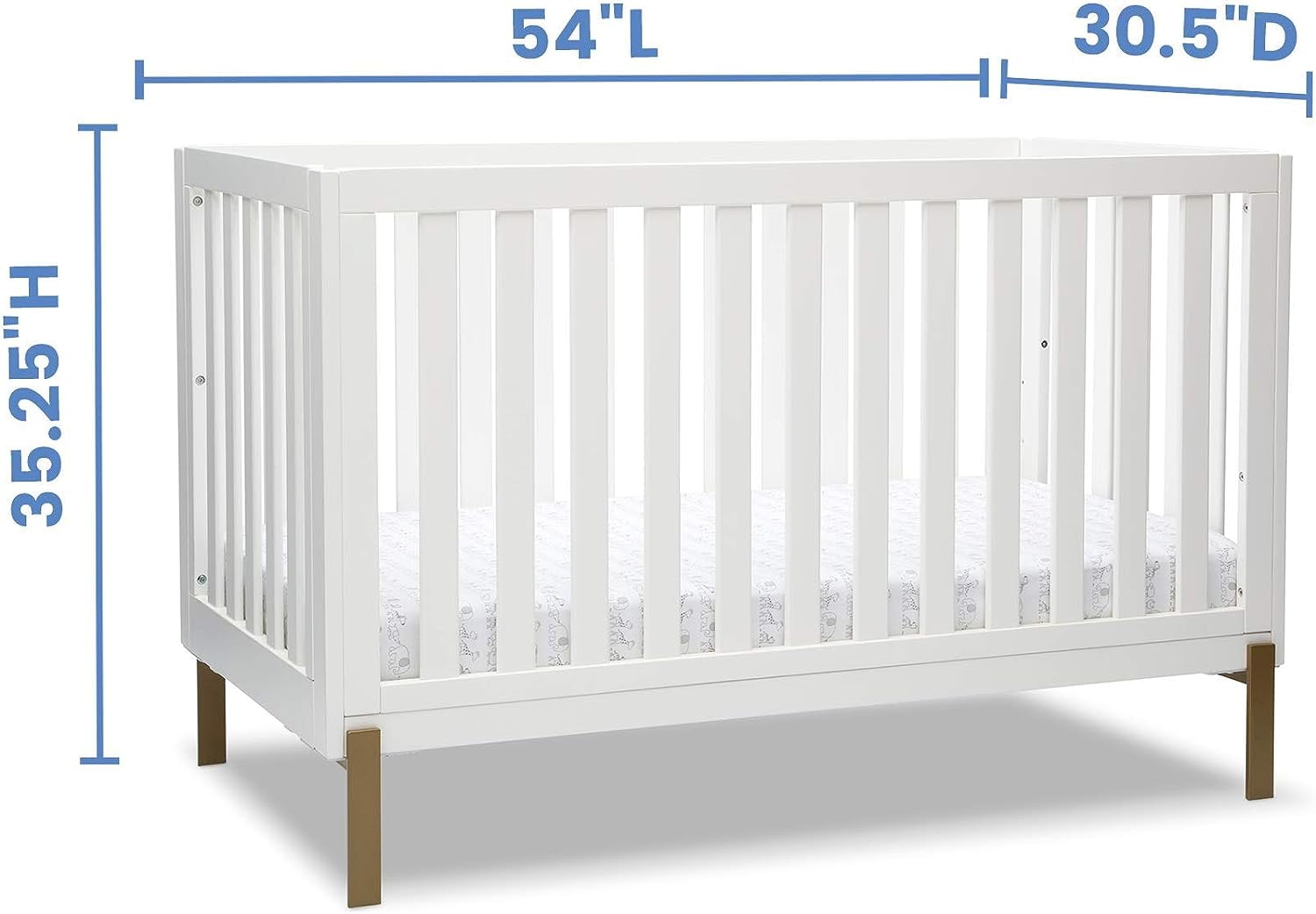 Delta Children Hendrix 4-in-1 Convertible Crib, Greenguard Gold Certified, Bianca White with Melted Bronze
