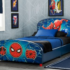 This Marvel Spider-Man Upholstered Twin Bed from Delta Children offers the ultimate retreat for your superhero-in training. Featuring your child s favorite web-slinging super hero, the headboard is adorned with vibrant, dynamic graphics of Spider-Man while the footboard has 3D applique detailing of his mask and web. Fully upholstered in faux leather with a sturdy and durable hardwood frame, this bed adds some crime-fighting adventure to their sleep space. Cozy, durable and colorful, it s the perfect twin bed for the hero in your life. About Spider-Man: After being bitten by a radioactive spider, Peter Parker gained incredible special powers. Along with his newfound abilities, Peter used his scientific knowledge to construct tools, a suit and a new alter ego, Spider-Man. Using his super powers to protect the public from evildoers, he knows that with great power comes great responsibility! Bring the action-packed fun of Spider-Man to your child’s bedroom or playroom with furniture and décor from Delta Children.