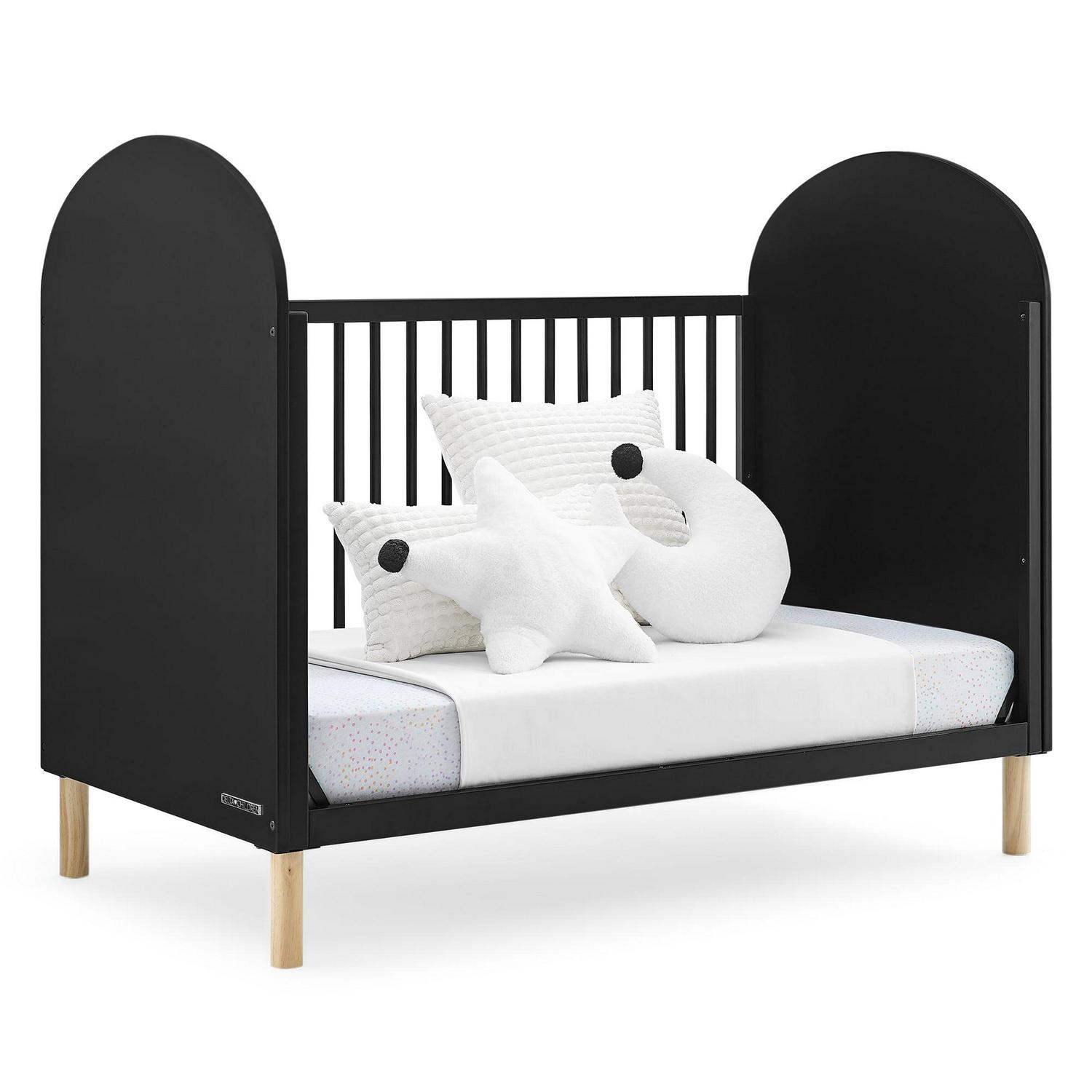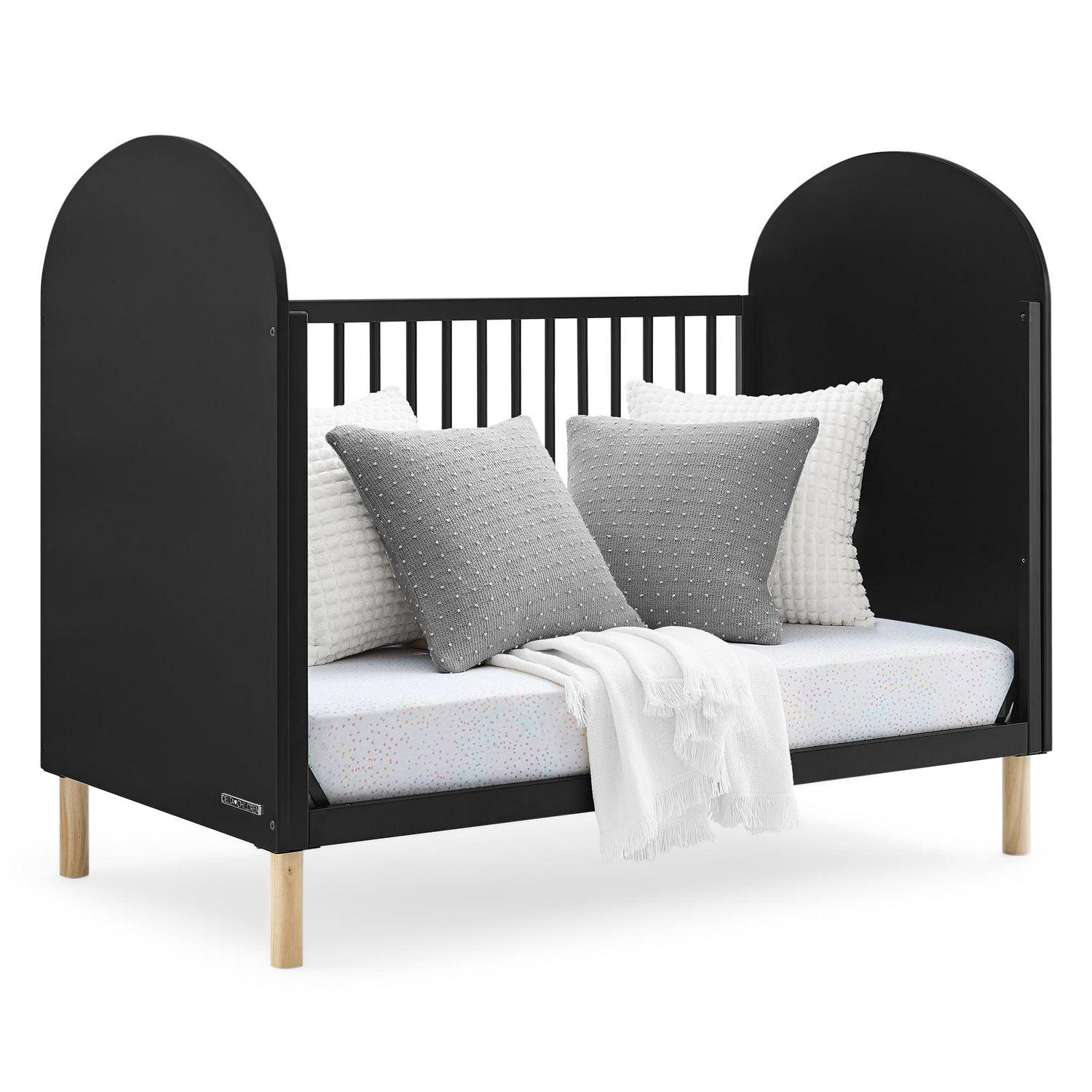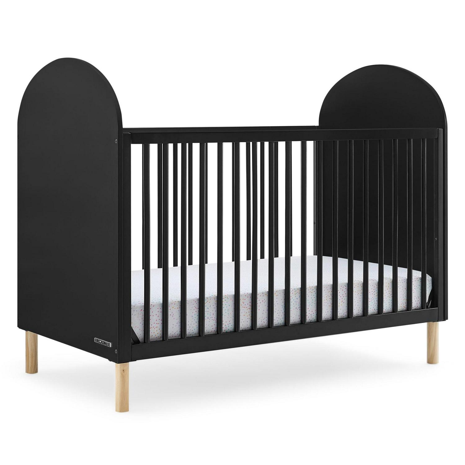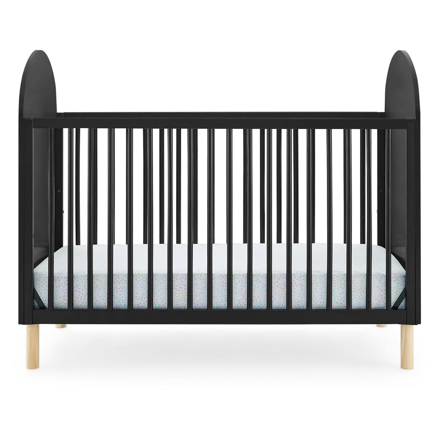 Stay ahead of the curve with the Reese 4-in-1 Convertible Crib by Delta Children. Its modern design features two-tone coloring with natural feet and round spindles framed by two bold arched panels on either end, giving your nursey an easy contemporary look. The crib also has an adjustable height mattress support, so you can easily adjust it as your child grows, just lower the mattress height as your child begins to sit or stand. This versatile crib can also be converted into a toddler bed, daybed, and sofa, making it a long-lasting investment for your child’s bedroom (Daybed/Sofa Rail included, Toddler Guardrail #W100825 sold separately). Plus, it s GREENGUARD Gold Certified, which means it s built to contribute to cleaner air for a healthy home. Available in several popular colors. Pair this crib with the Reese Bookcase to complete your space.